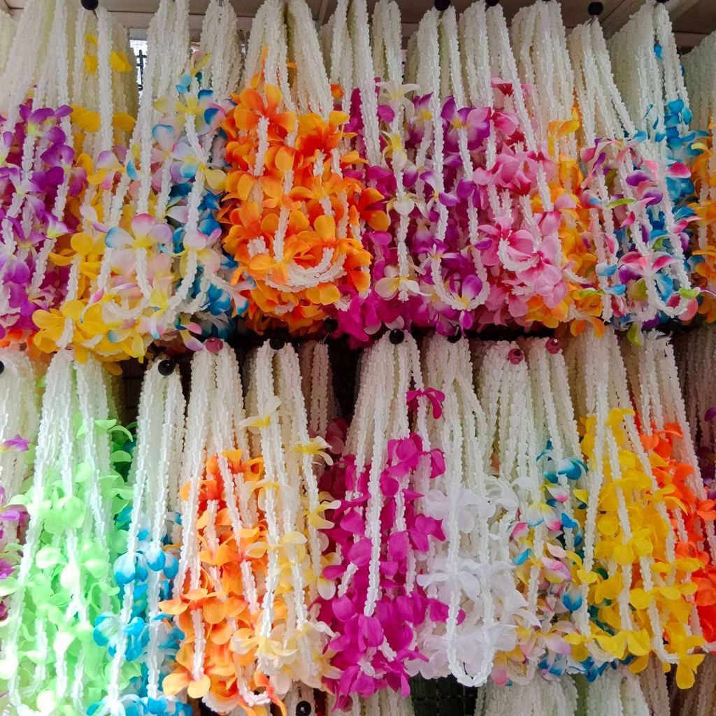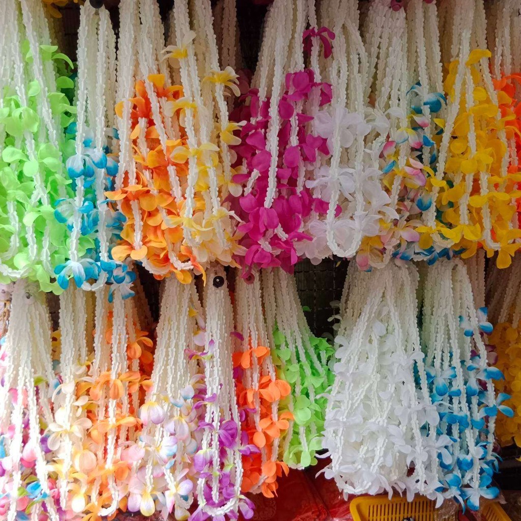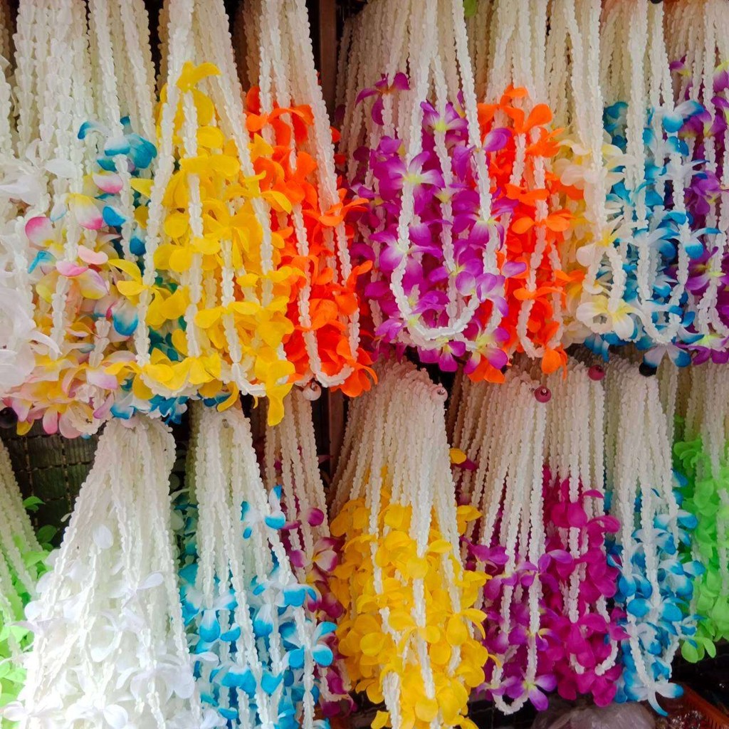 (ยกโหล12เส้นคละสี)มาลัยสงกรานต์ มาลัยฮาวาย มาลัยดอกไม้