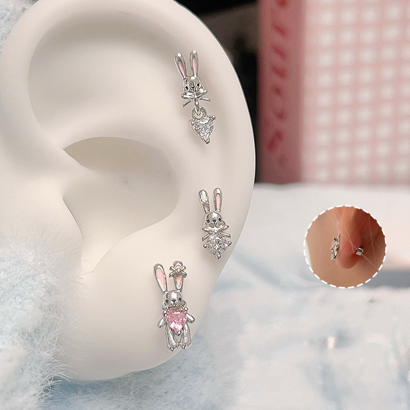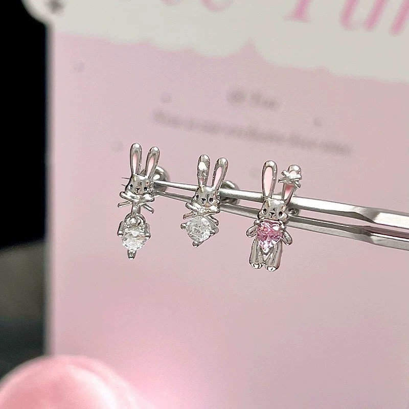 ต่างหูโลหะผสมคริสตัลหัวใจ กุญแจ.rabbit สำหรับผู้หญิง