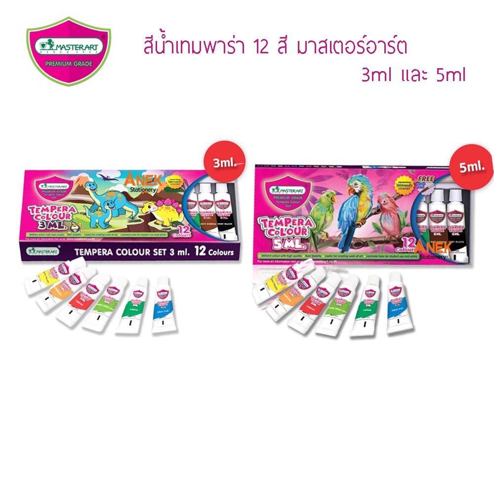 สีน้ำเทมพาร่า 3 มล. และ 5 มล. (กล่อง12สี) มาสเตอร์อาร์ต Tempera (จำนวน 1 กล่อง)