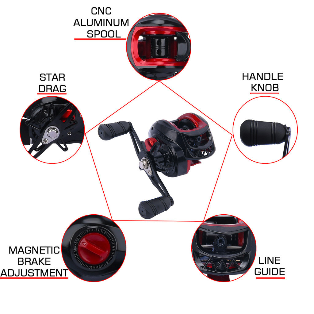 1.6 M/1.8 M 2 ส่วนคันเบ็ดคาร์บอนหล่อ 18 + 1BB Baitcasting ตกปลา Reel ชุด Fihsing Line Lure สําหรับน้ําจืด/น้ําเกลือ Joran Pancing