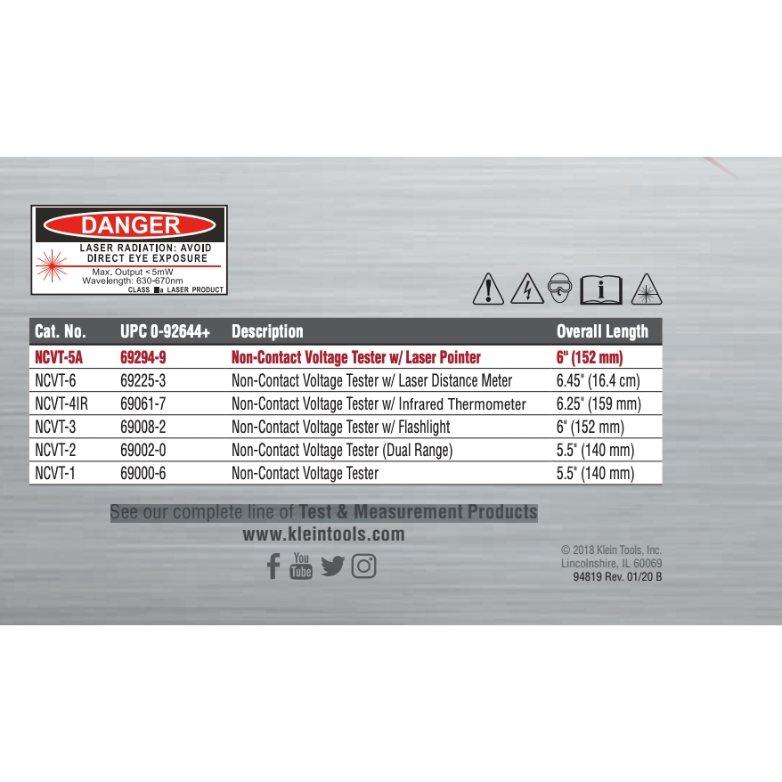 ปากกาทดสอบแรงดันไฟฟ้าแบบไม่สัมผัส ช่วงคู่ พร้อมไฟฉาย KLEIN NO.NCVT-3P Dual Range Non-Contact Voltage Tester with Flashl