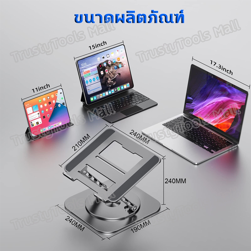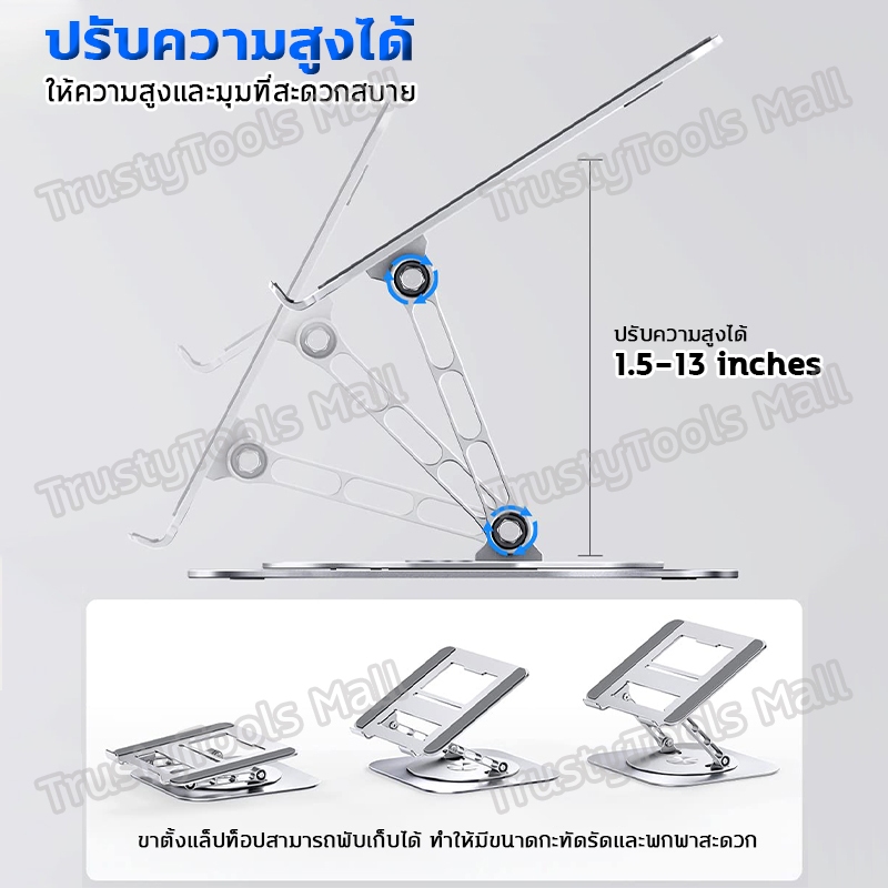 แท่นวางโน๊ตบุ๊ค การหมุน 360° 10-17.3นิ้ การยกและพับ1.5-13นิ้ ที่วางไอแพด มั่นคงและไม่เอียง แผงระบายความร้อน