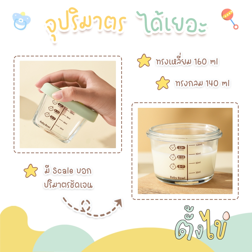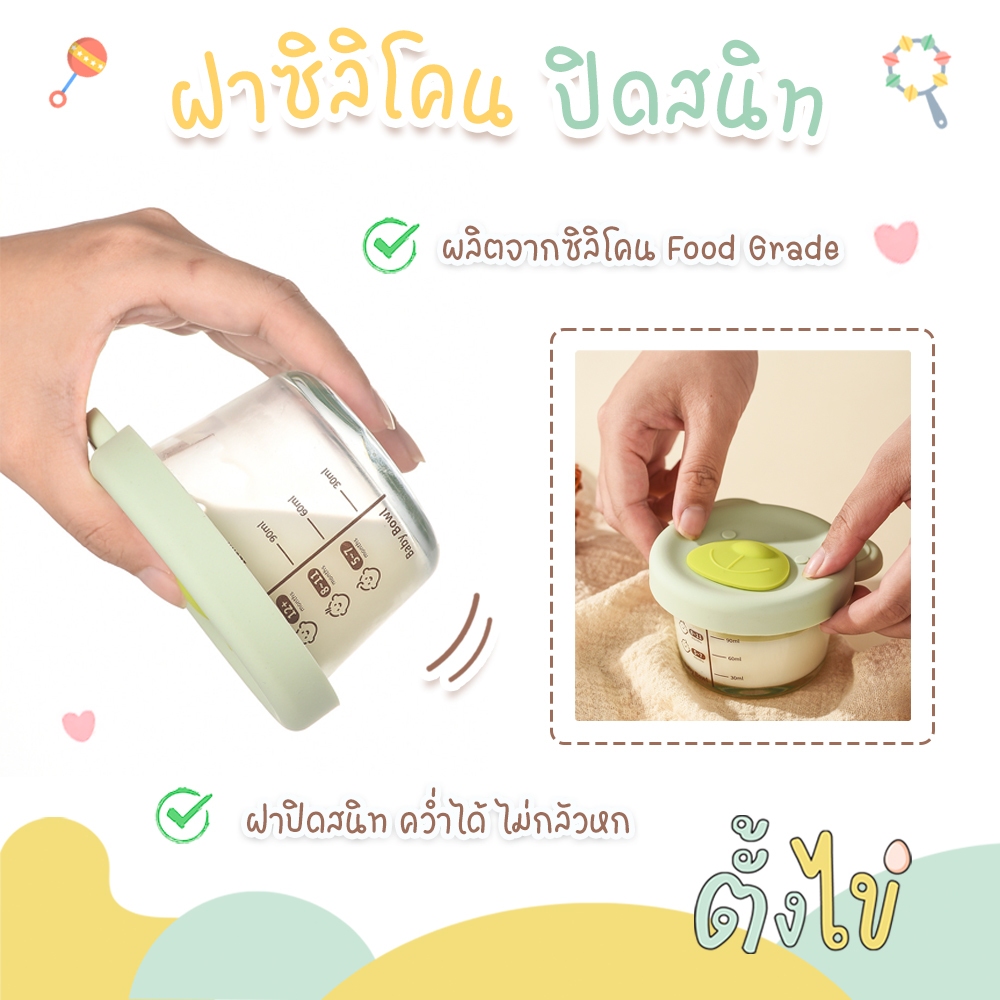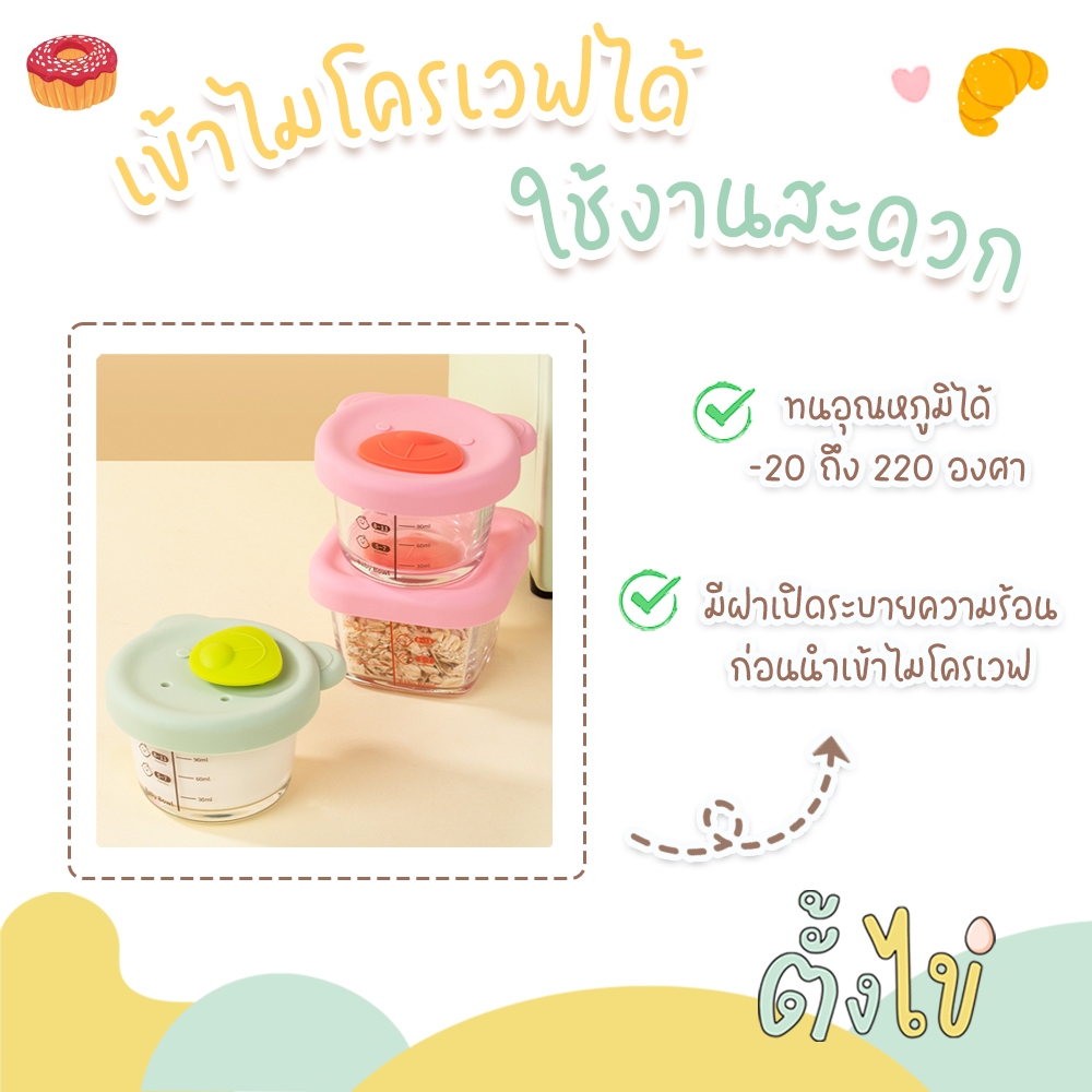 [ตั้งไข่] กล่องเก็บอาหารเด็ก กล่องแก้วเก็บอาหาร ถ้วยแก้วใส่อาหาร ลายหมีน้อย เข้าไมโครเวฟได้