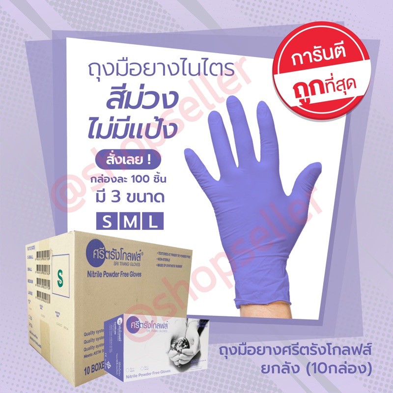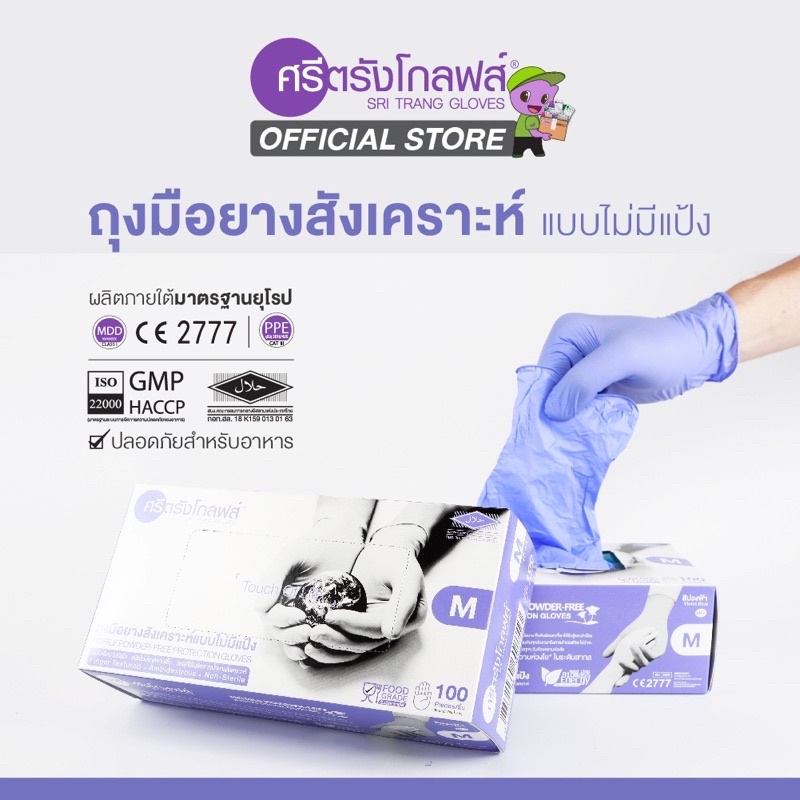 ถุงมือไนไตร สีม่วง ศรีตรัง แบบไม่มีแป้ง ศรีตรังโกลฟส์ กล่องสีม่วง ขายยกยลัง