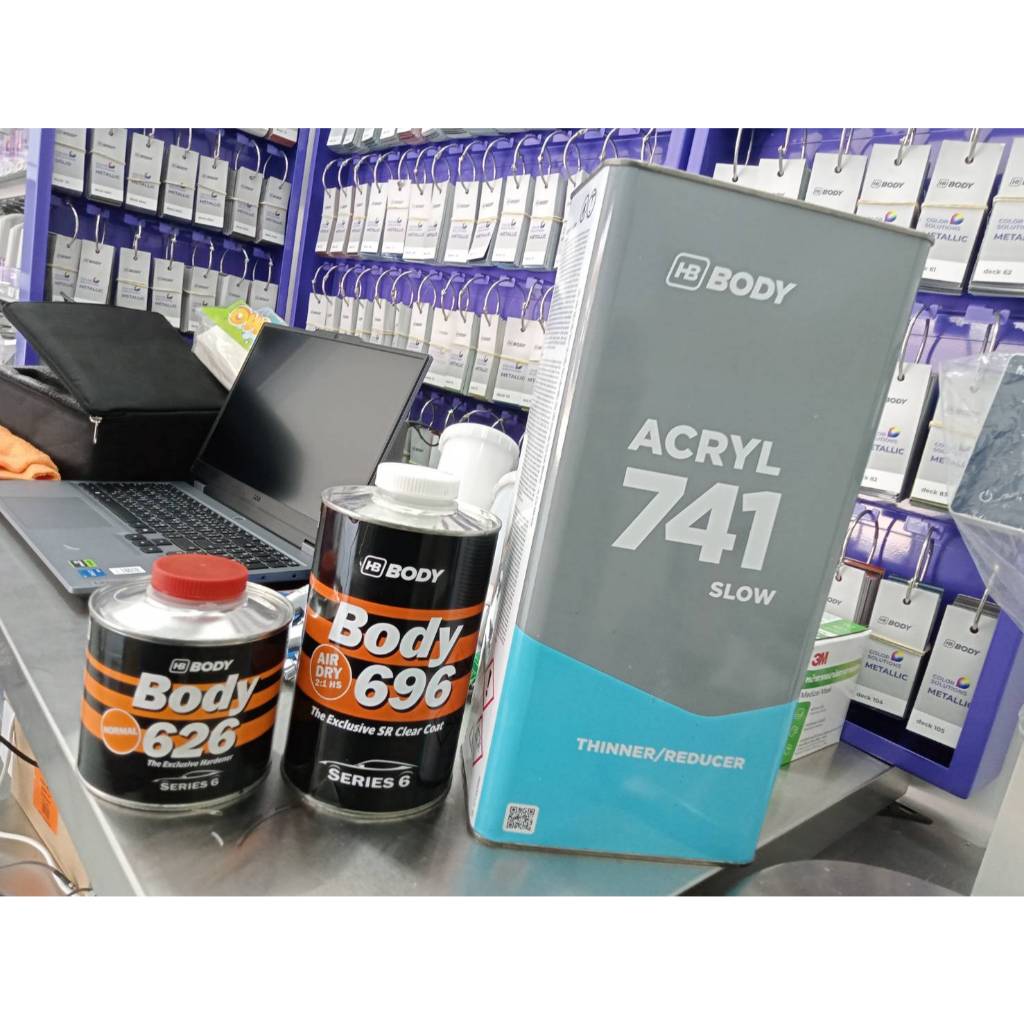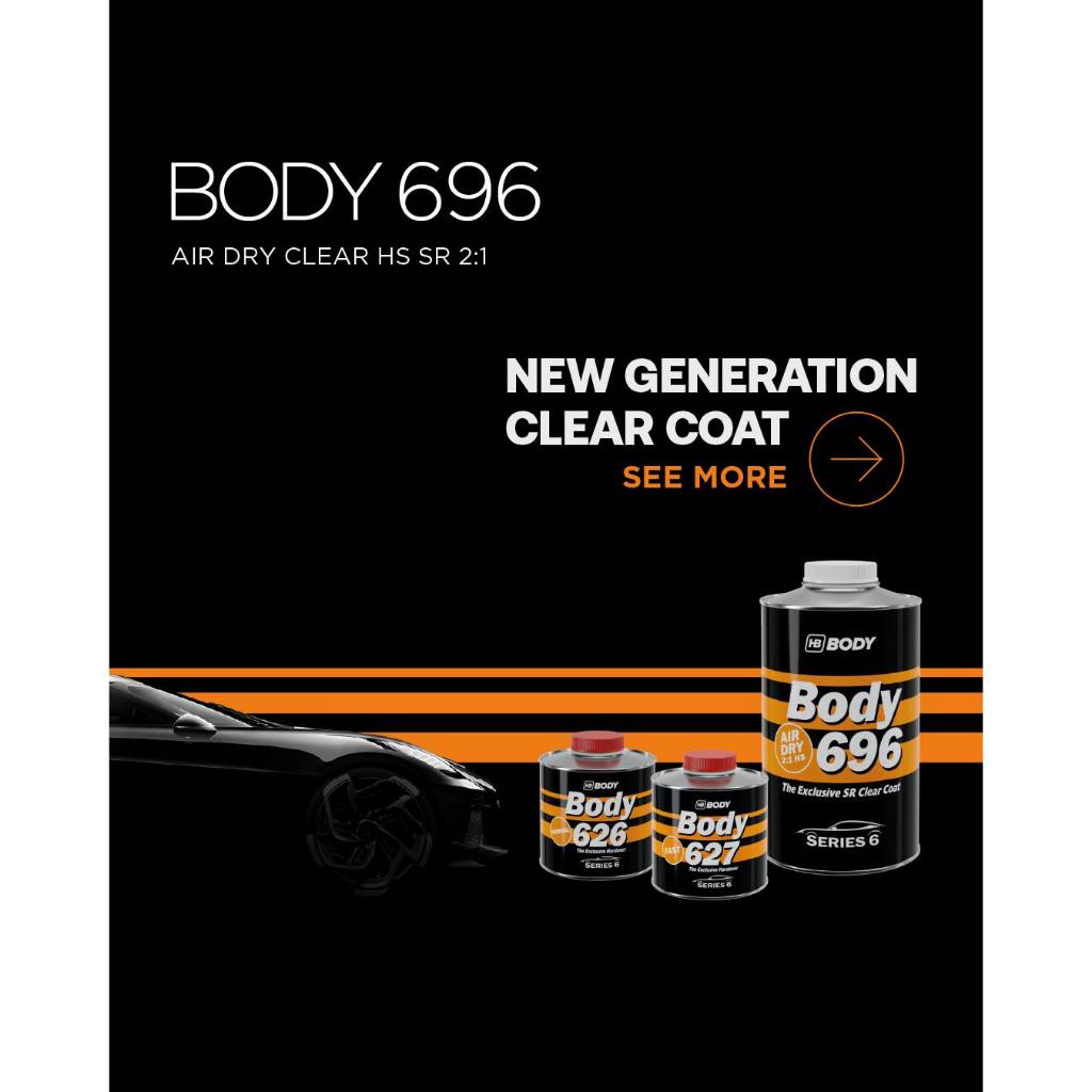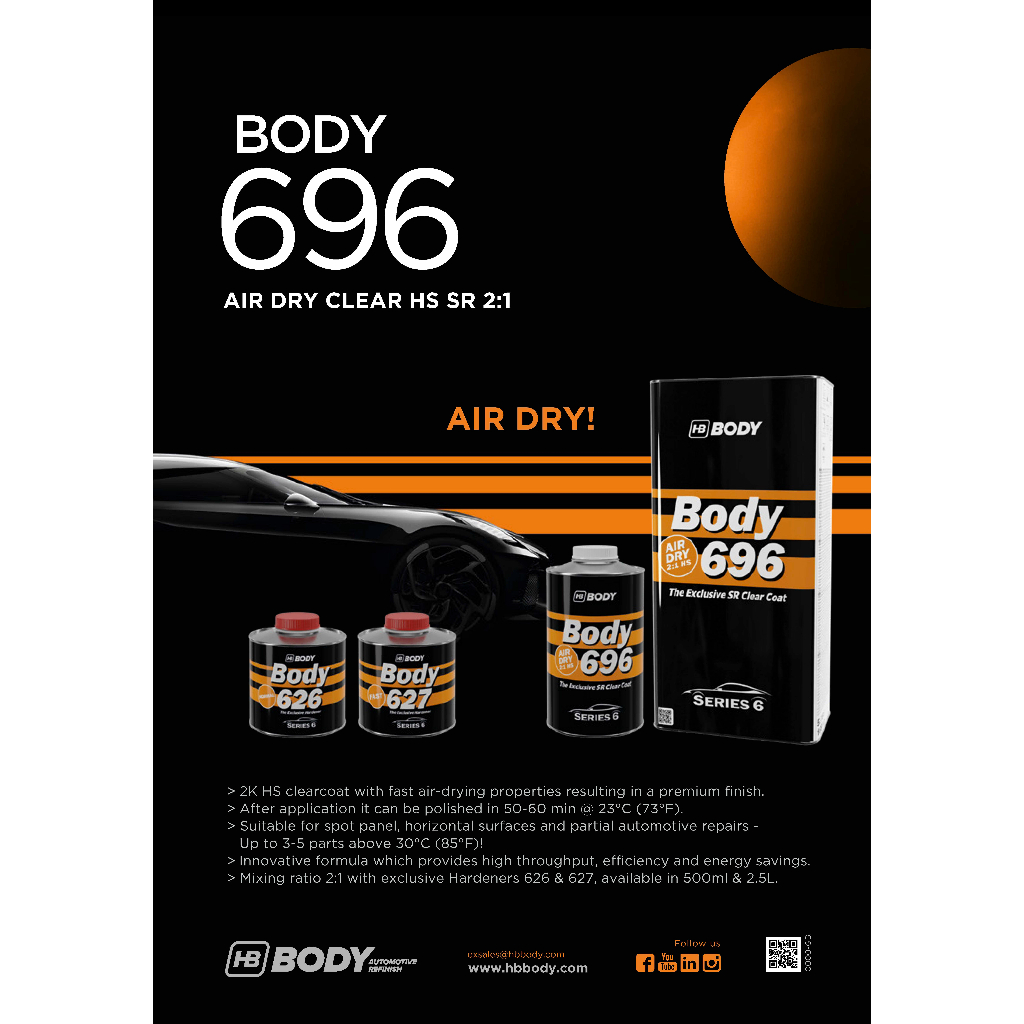 แลคเกอร์แห้งเร็ว 2K รุ่น 696 AIR DRY CLAR HS SR ระบบ 2:1 แห้งเร็วโดยไม่ต้องอบ HB BODY ขายแยกเนื้อ 1L น้ำยาเร่ง 500ml