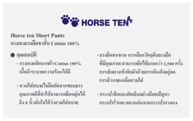 Horse ten กางเกงขาสั้น 3 ส่วน (คลุมเข่า) 2XL ยาว 24‘สำหรับคนsize ใหญ่ (เอวยืดได้ตั้งแต่ 36-44’) No:6111