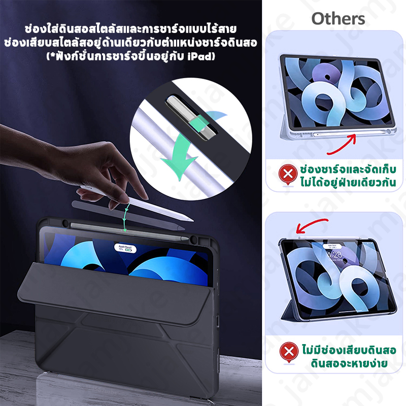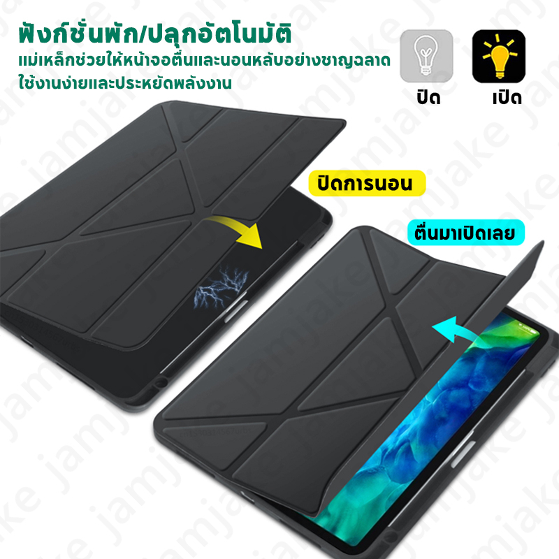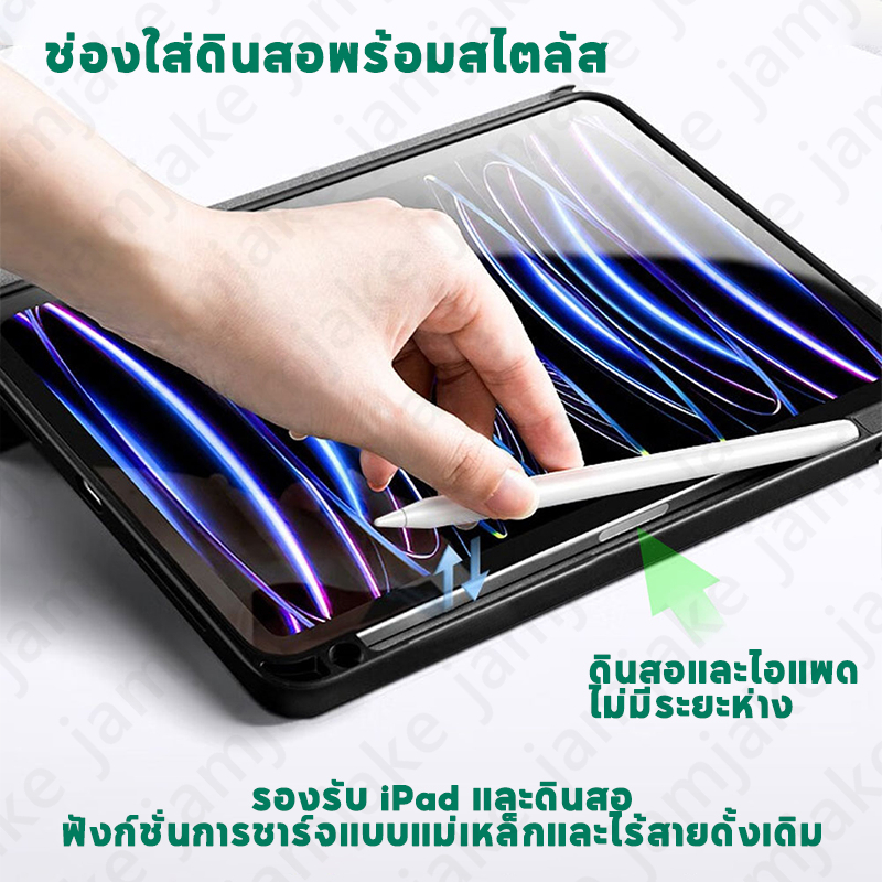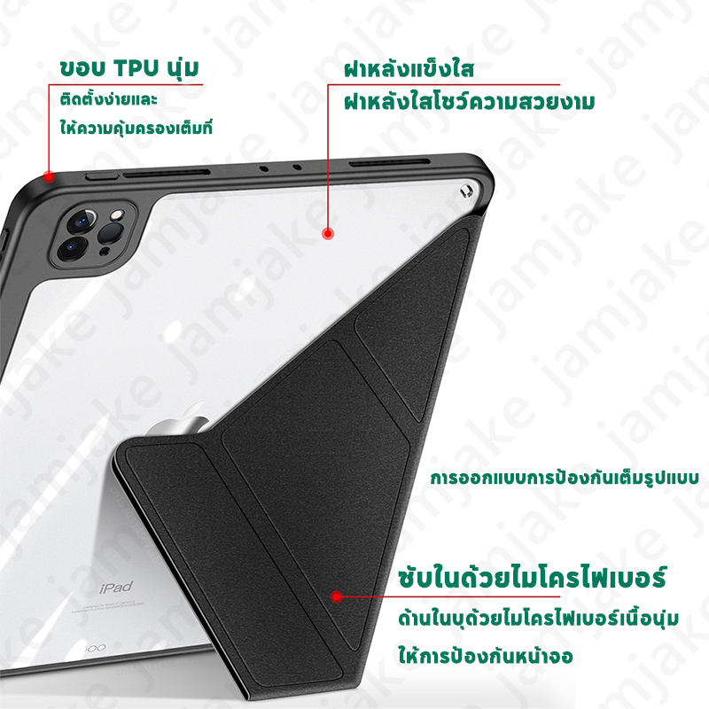 เคสป้องกัน iPad 10.2นิ้ว Gen7/8/9 และ Air 4/5/6 Pro 11/13 2025 Gen10 A16 Air1/2 Mini6 Mini7 2025 มีช่องเก็บปากกา หลังใส เคส iPad แบบแข็ง ปิดหน้าจอโดยอัตโนมัติ