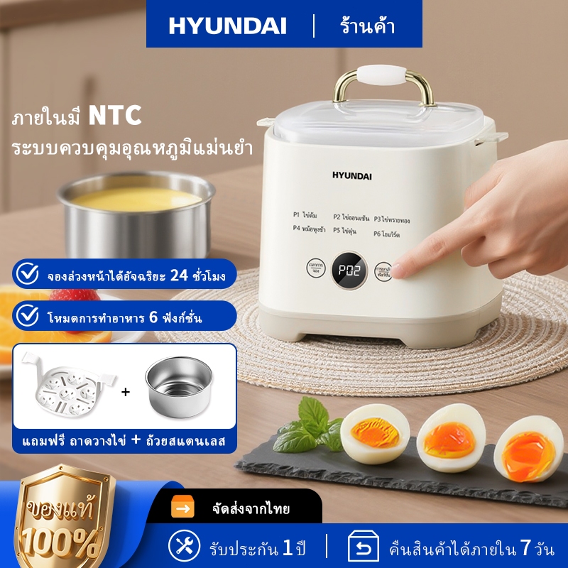HYUNDAI หม้อต้มไข่ อัตโนมัติ 5ฟอง จับเวลา Electric Egg Cooker หม้อนึ่งไข่ ที่นึ่งอาหาร เครื่องต้มไข่ไฟฟ้า และนึ่งอัตโนมั