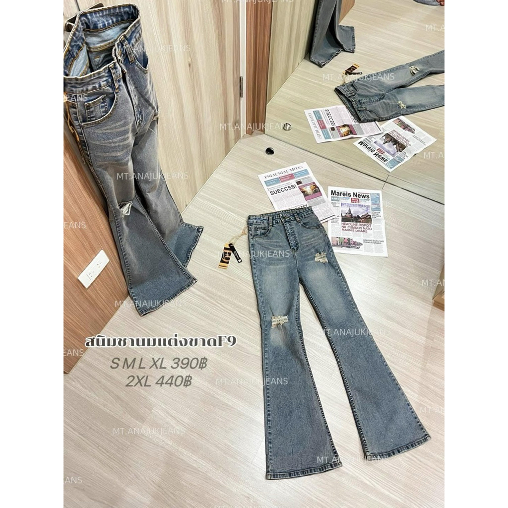 F9 Jeans (S-2XL) กางเกงขาม้า คละแบบยีนส์ยืดเอวสูงพิเศษเหนือสะดือ 2 นิ้ว ผ้านิ่มยืดได้เยอะ ใส่สบายไม่อึดอัดทรงสวยมาก