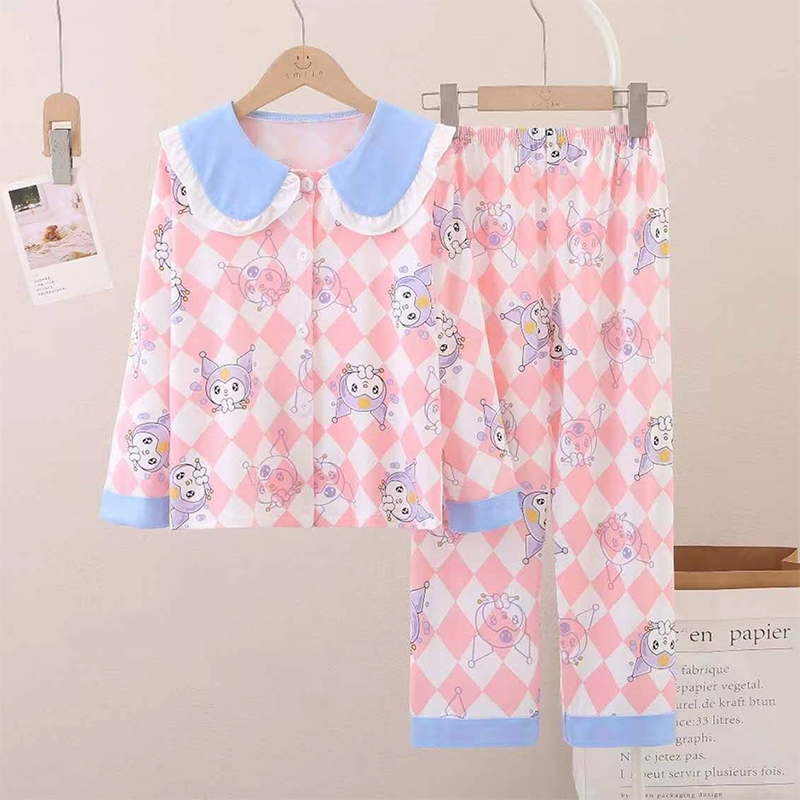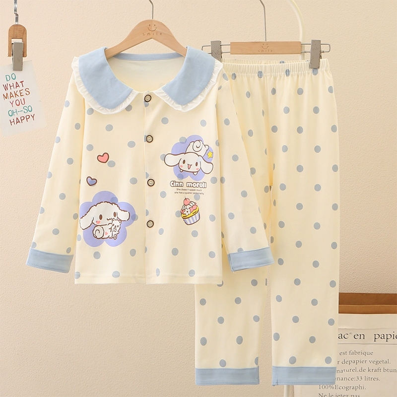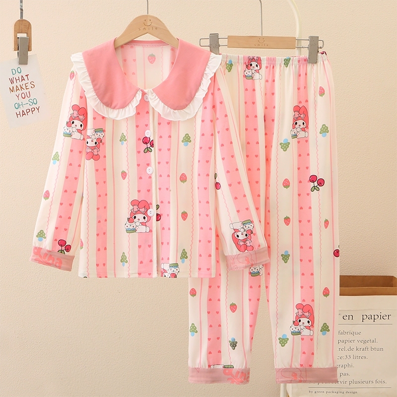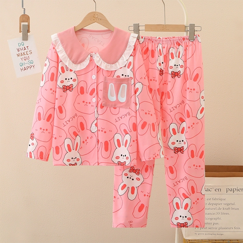 ชุดนอนเด็กผู้หญิง น่ารักชุดนอนคอบัว เสื้อแขนยาว + กางเกงขายาว ผ้านิ่มนุ่ม ยืดหยุ่นสูง พิมลายการ์ตูน
