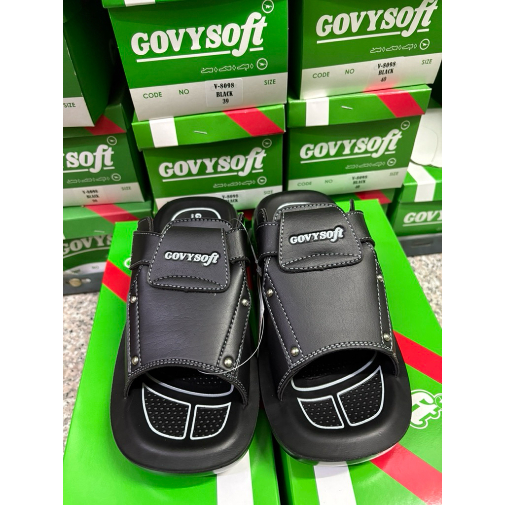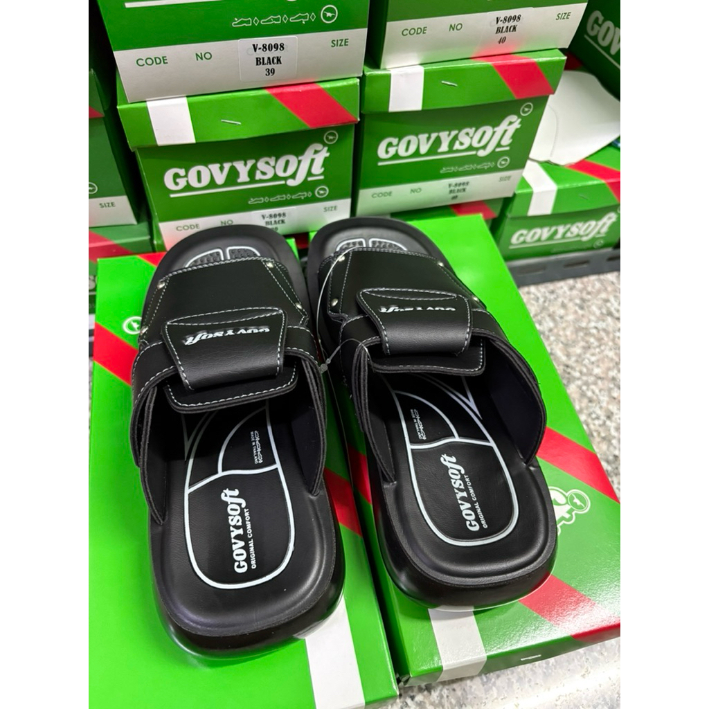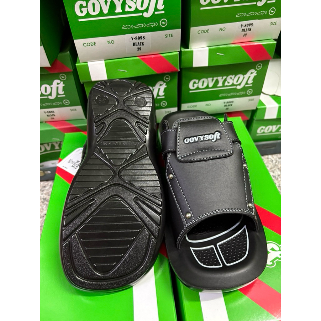 รองเท้าแตะชาย แบรนด์ Govy Soft รุ่น 1002 หนัง PU นุ่มใส่สบาย สีดำ ไซส์ 38-43