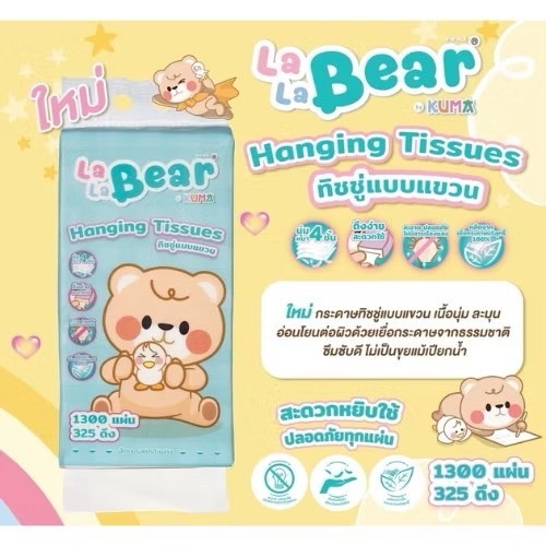(ยกลัง) LaLaBear กรดาษทิชชู่แบบแขวน 1300 แผ่น จำนวน 4 แพ็ค (1 ลัง)
