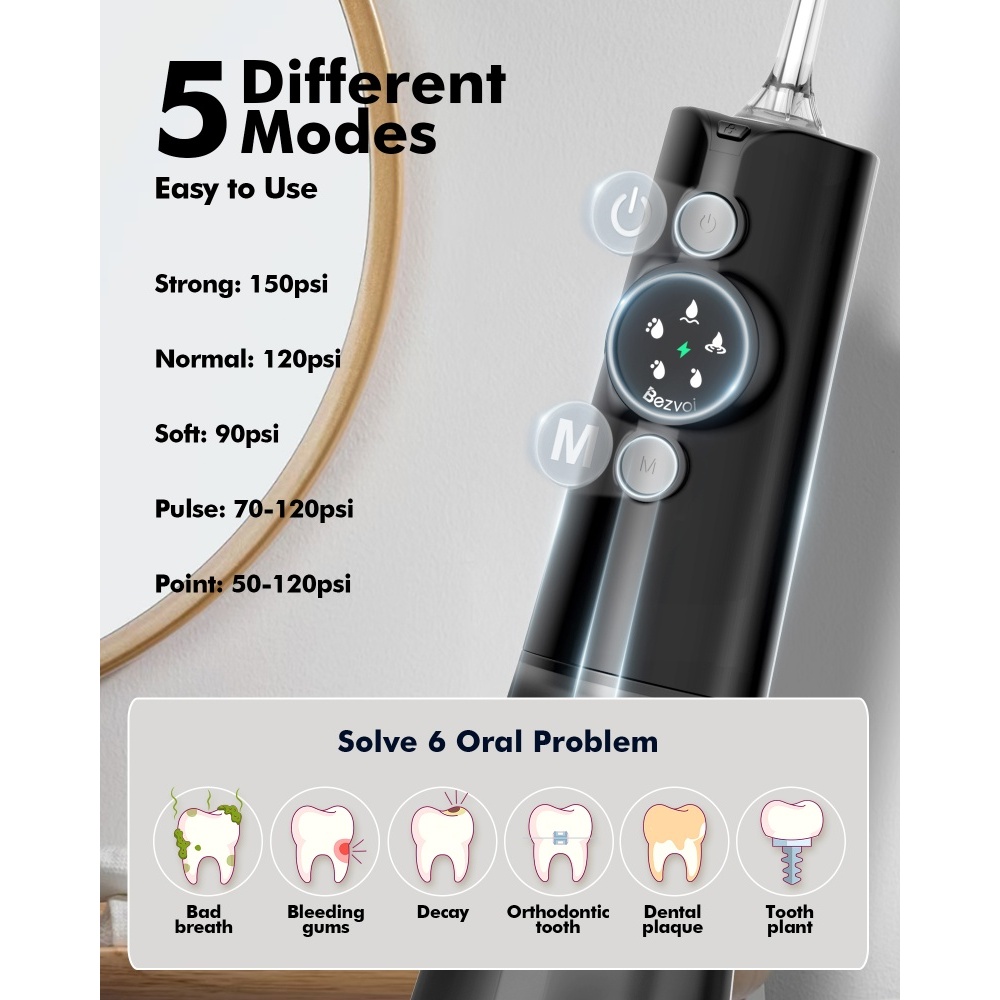 【COD】จัดส่ง 24 ชั่วโมง Bezvoi Y215 Water Flosser 300ML & จอแสดงผล LED ไหมขัดฟันทันตกรรมสําหรับวงเล็บเหงือกอ่อนไหวแบบพกพาทําความสะอาดฟัน กำจัดคราบหินปูน Oral Irrigation ทันตกรรม Cavity Care