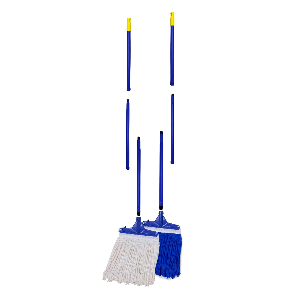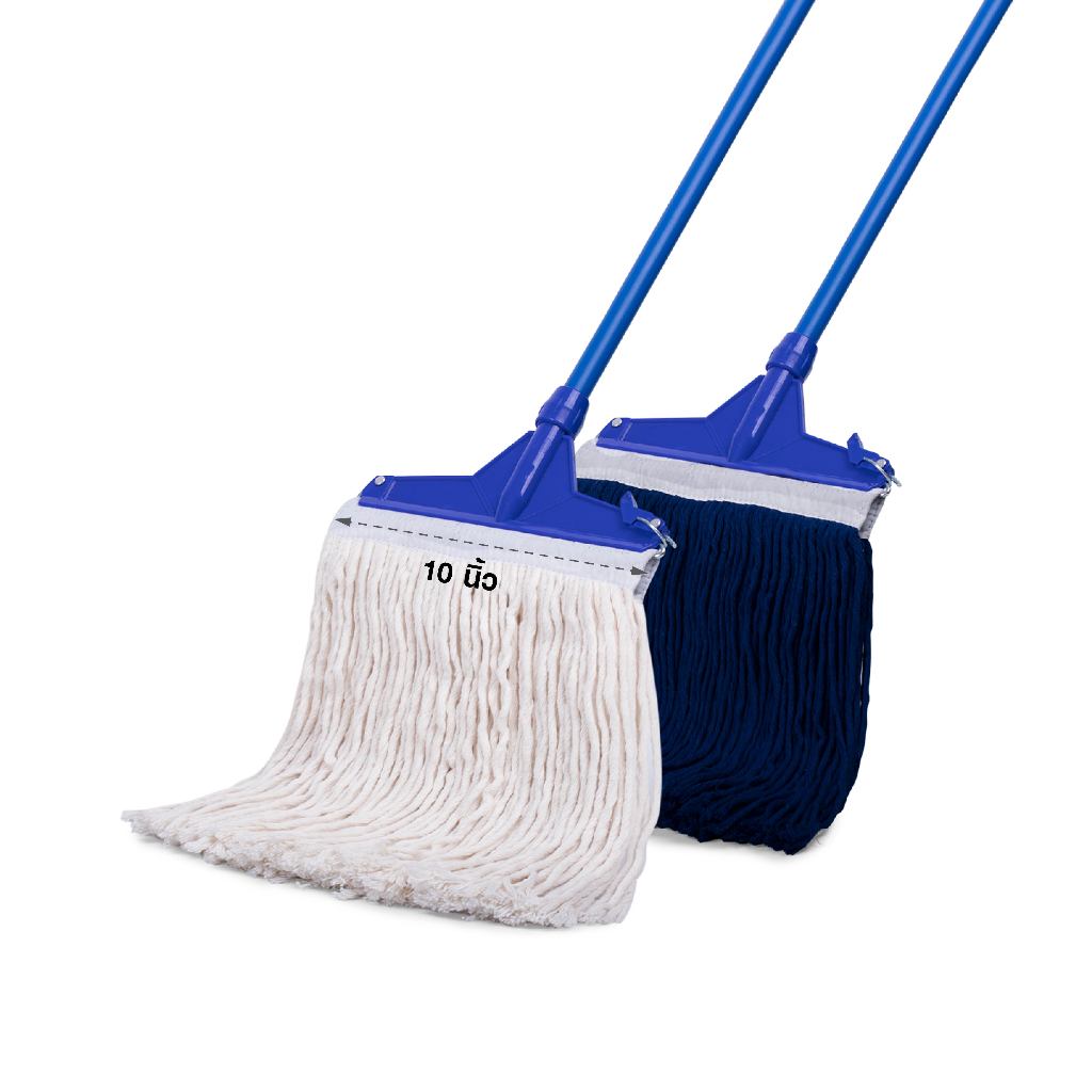 [2614] ไม้ม็อบคลิปล็อค 10" 200g แพ็คคู่ สีขาว+น้ำเงิน ด้ามเหล็กกันสนิม 3 ท่อน SUPERCAT ผ้า Cotton ซับน้ำดี