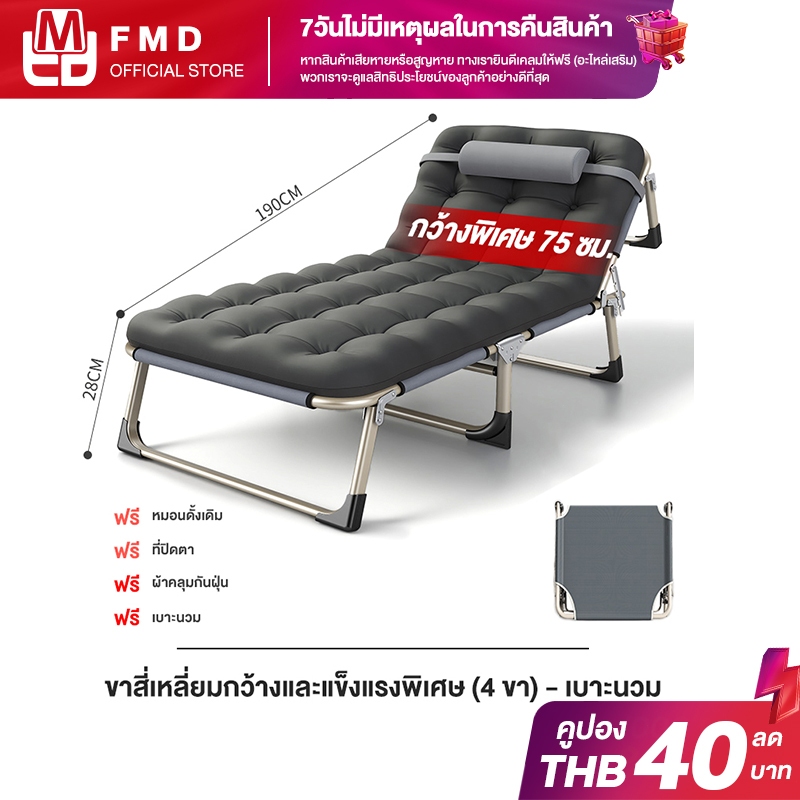FMD เตียงพับ เก้าอี้นอนปรับระดับได้ เตียงสนาม เตียงพักกลางวัน ไม่ต้องติดตั้ง เตียงเดี่ยว เตียงอเนกประสงค์นั่งเอนกายปร