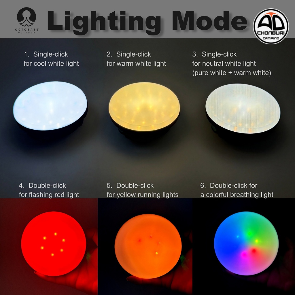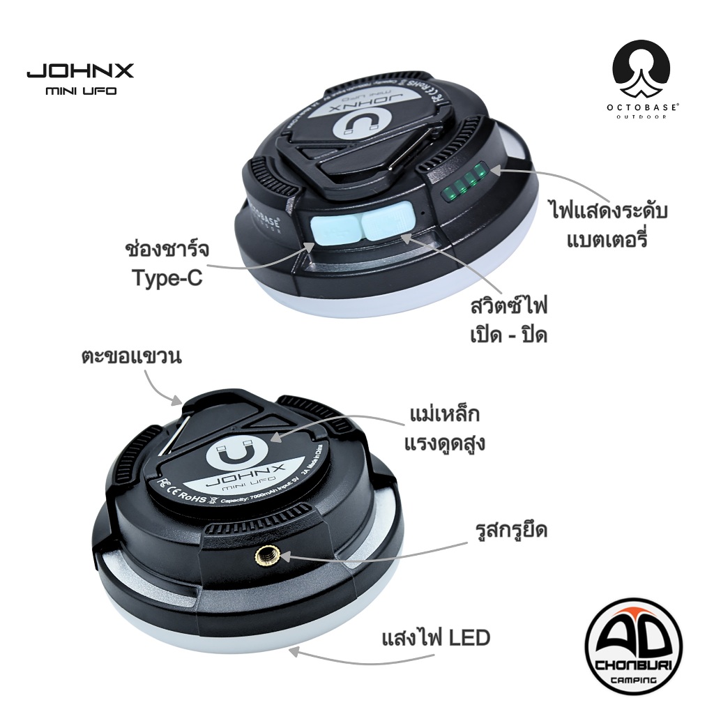 OCTOBASE LED JOHNX MINI UFO โคมไฟแคมป์ปิ้ง ไฟซาลาเปา ไฟในเต็นท์ ชาร์จ USB กันน้ำ เบา สว่าง1000 lm.