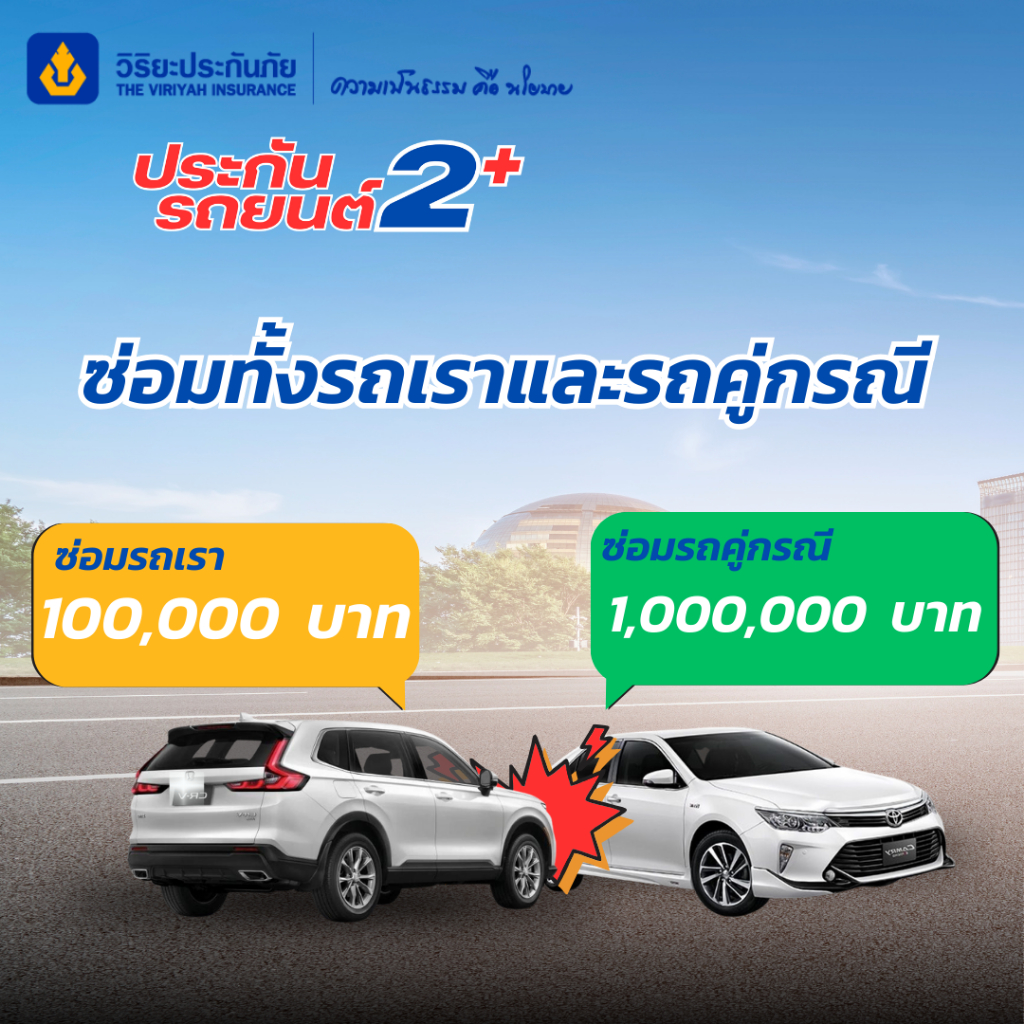 ประกันรถยนต์ วิริยะ 2+ อุ่นใจสบายกระเป๋า ทุน 150,000 บาท คุ้มครอง 30 วัน/675 บาท (รับรถไม่เกิน 20 ปี)