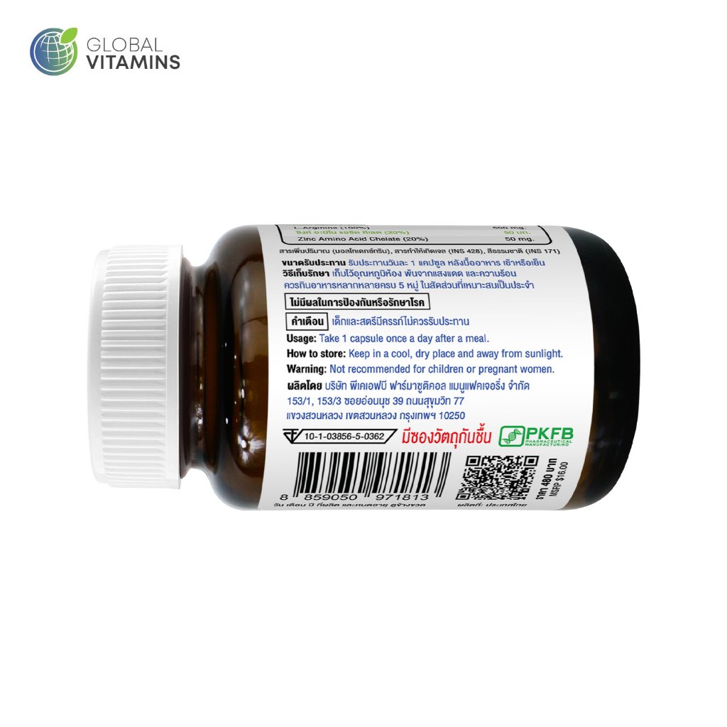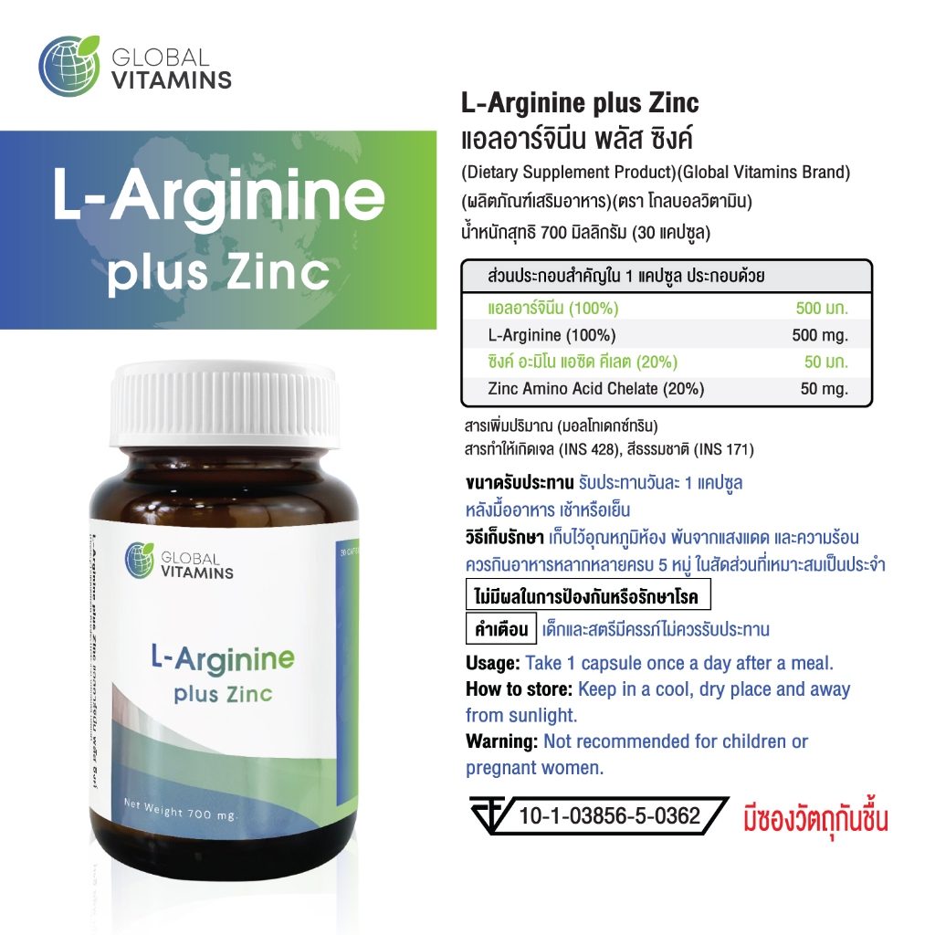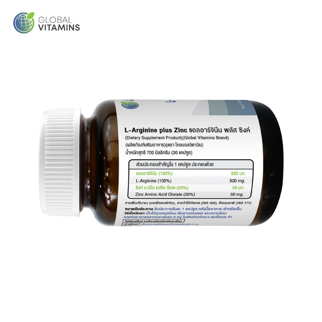 [แพ็ค 3 ขวด] แอลอาร์จินีน พลัส ซิงค์ โกลบอลวิตามิน L-Arginine plus Zinc Global Vitamins แอล-อาร์จินีน ซิงค์ L Arginine
