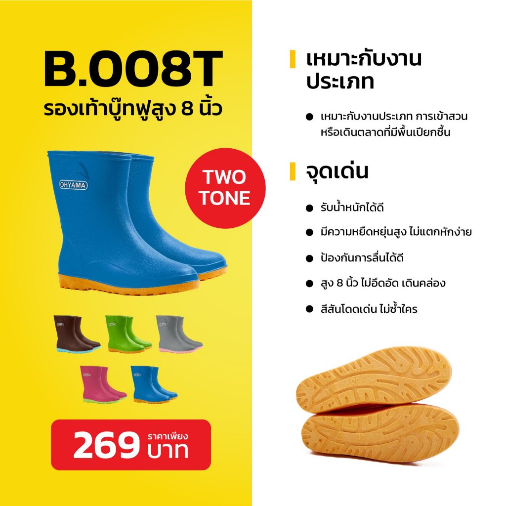 OHYAMA TWO TONE รองเท้าบูท ยางพาราเทียม นุ่มฟู ความสูง 8 นิ้ว มีขนาด 9.5 - 11.5 # รุ่น B.008 T