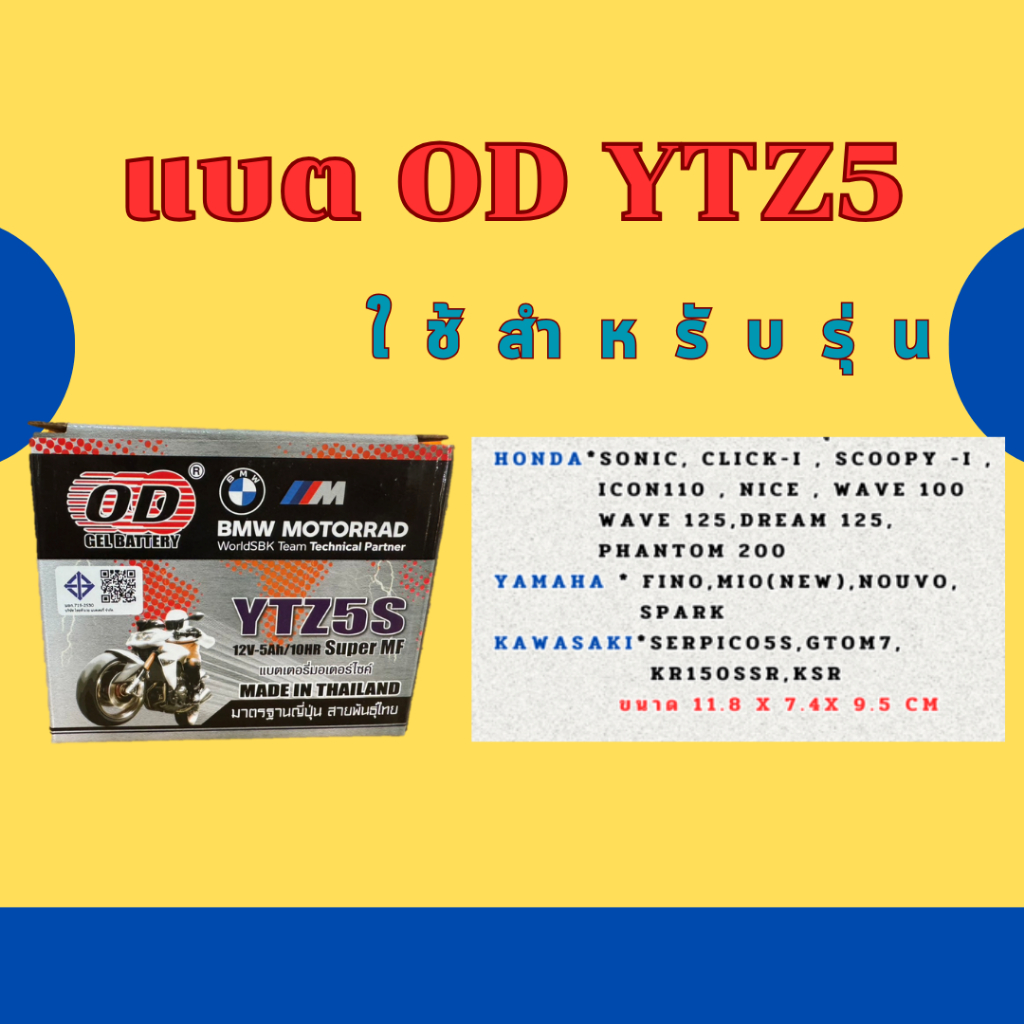 แบตเตอรี่มอเตอร์ไซค์ OD YTZ5S 12V-5Ah/10HR.