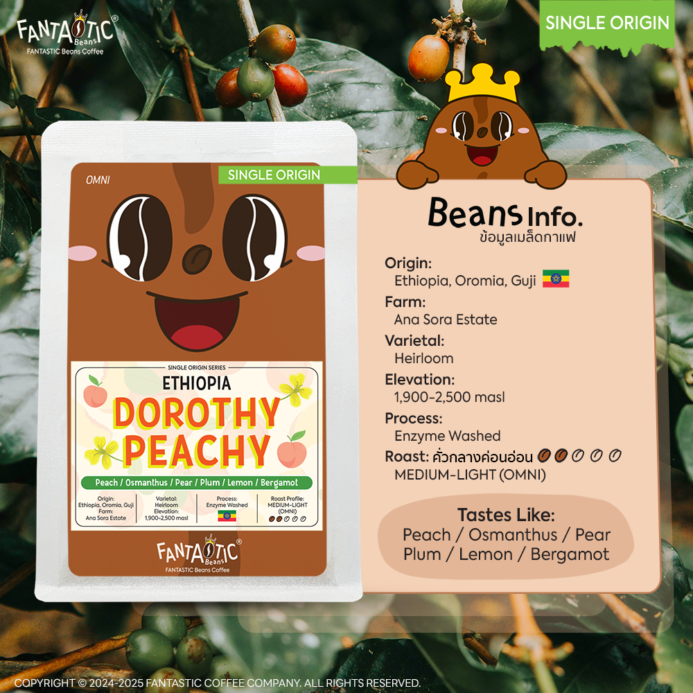 เมล็ดกาแฟ Ethiopia Dorothy Peachy (คั่วกลางอ่อน) FANTASTIC Beans Coffee