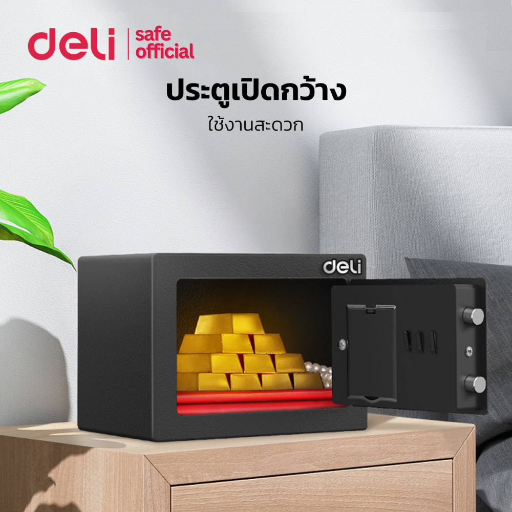 Deli ตู้เซฟมินิ ตู้เซฟนิรภัยขนาดเล็ก สีป้องกันสนิม แข็งแรง ล็อค2แบบ มี3สี รับประกัน 1 ปี Safe Box