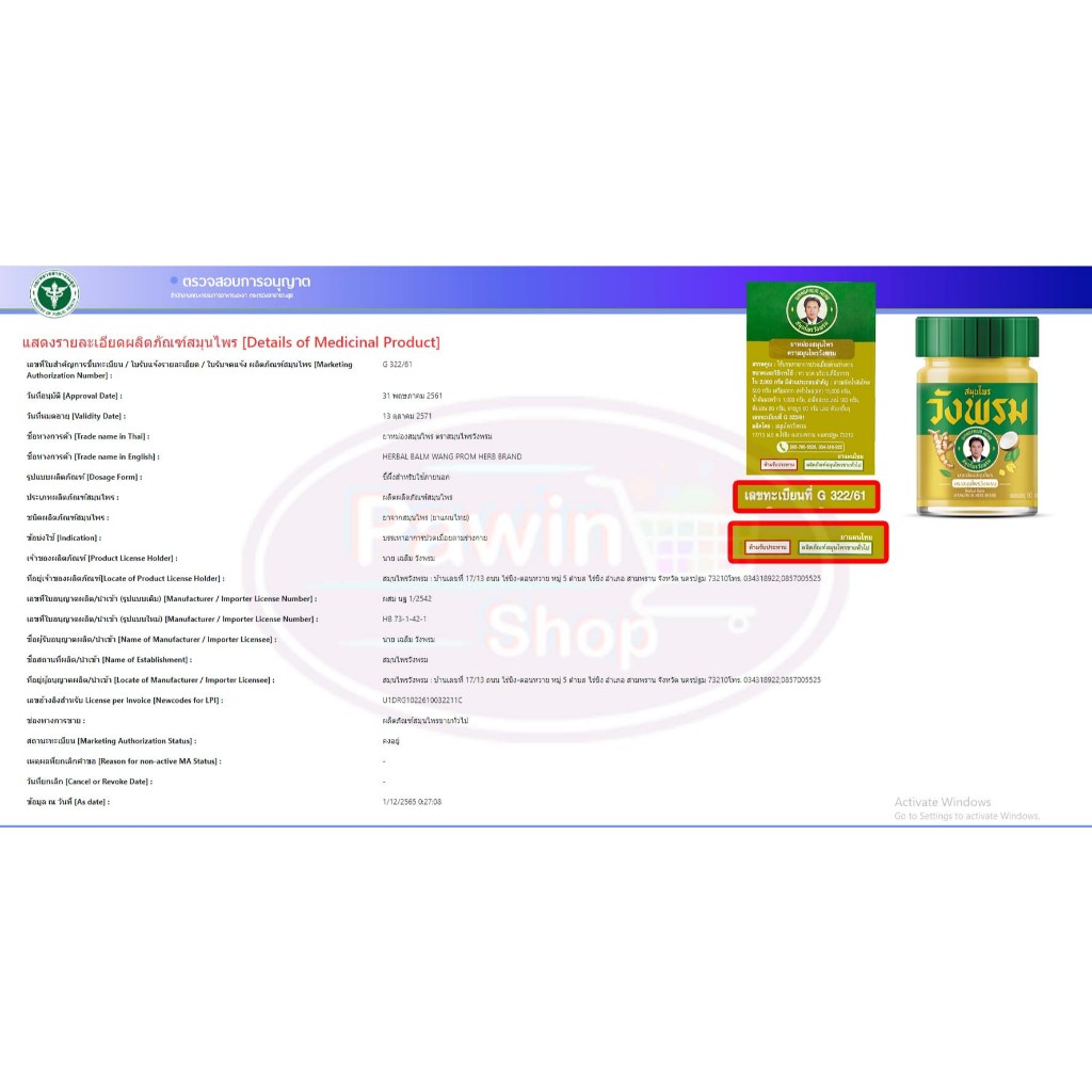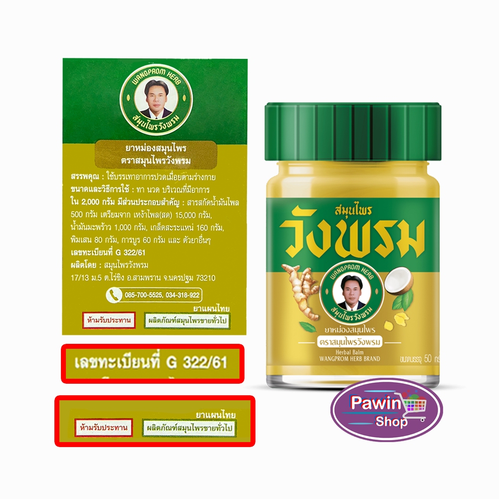 สมุนไพร วังพรม หมอเฉลิม ยาหม่อง สูตรร้อน ขนาด 50 กรัม [6 ขวด สีทอง] GG 9212 Wangprom Herb สมุนไพรวังพรม สมุนไพรขายทั่วไป