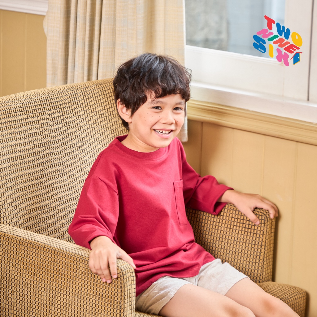 Kids T-Shirts เสื้อยืดเด็ก แขนยาว เนื้อผ้านุ่ม Cotton 100 สัมผัสเบาสบาย_สีแดง