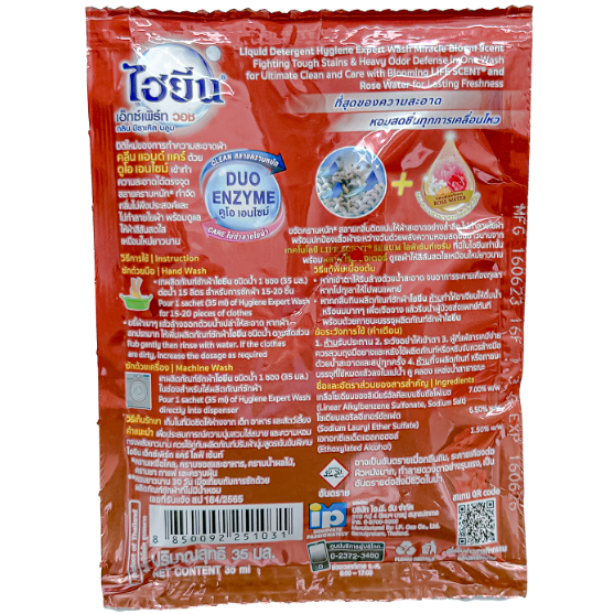 1 ซอง คละสีคละยี่ห้อ บรีสหรือ ไฮยีน น้ำยาซักผ้า 30-35 มล. Hygiene expert wash เข้มข้น บรีสเอกเซล
