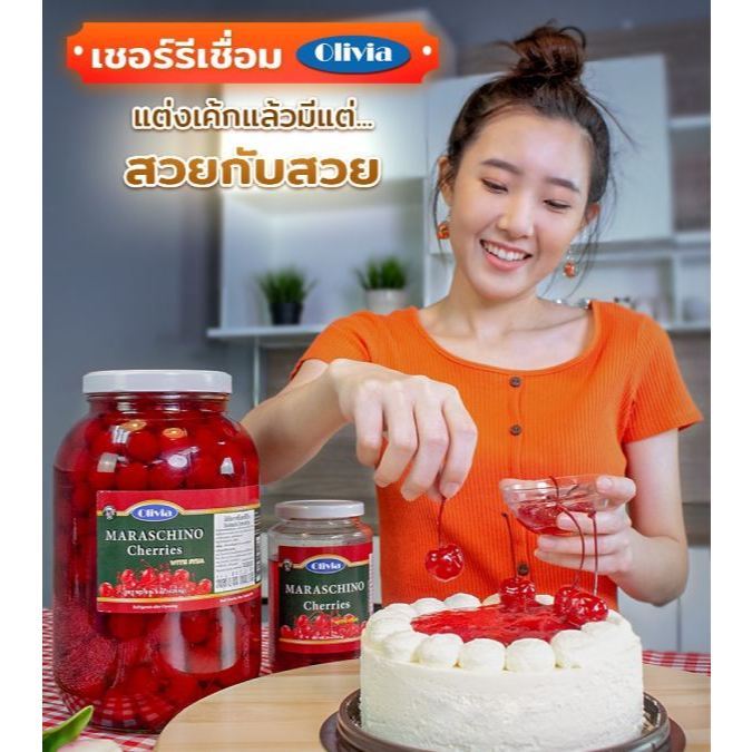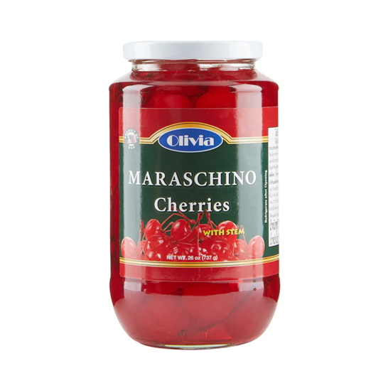 OLIVIA Maraschino Cherry 737g. - โอลิเวีย เชอรี่มาราชิโน่มีก้าน เชอรี่เชื่อม เชอรี่แดง 737 กรัม