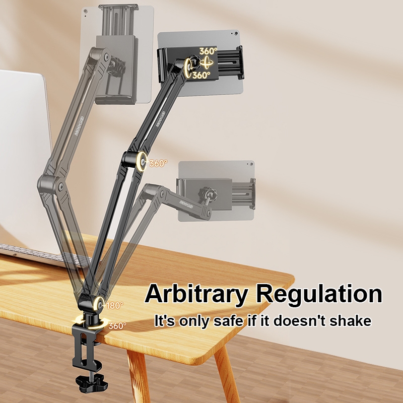 MEEGOO ขาจับโทรศัพท์มือถือ ขาตั้งไอแพดแบบหนีบ สำหรับข้างเตียงและเดสก์ท็อป ยืดได้ หมุนได้ 360 องศา