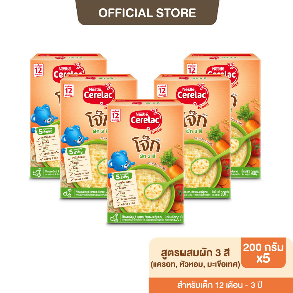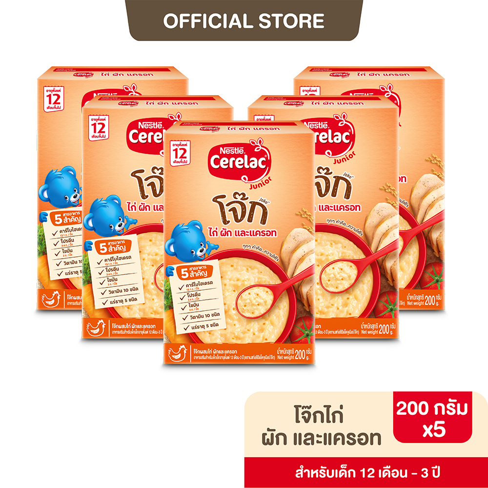 [อาหารเสริมเด็ก] NESTLE CERELAC เนสท์เล่ ซีรีแล็ค ขนาด 200 กรัม (5 กล่อง) อายุ 12 เดือน - 3 ปี