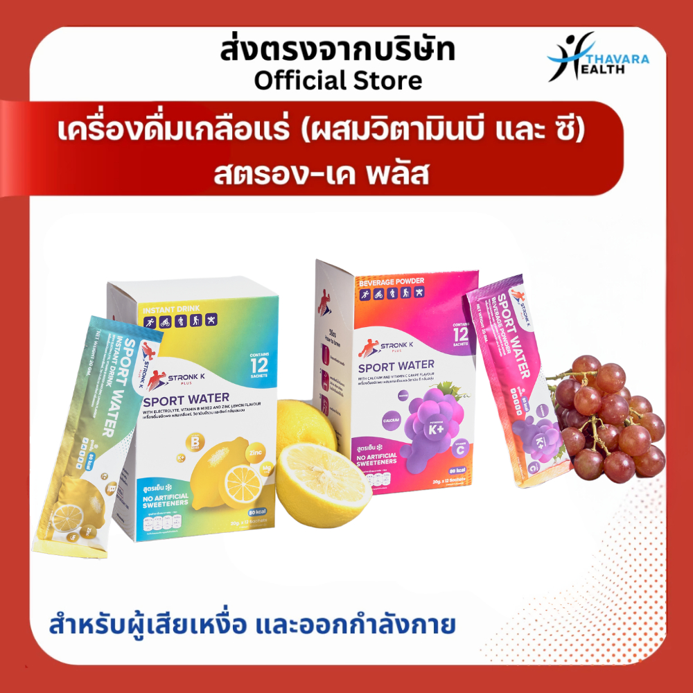 STRONK K PLUS เครื่องดื่มเกลือแร่ผสมวิตามินซี,บีมิกซ์ แคลเซียม ซิงค์ รสองุ่นและเลมอน ป้องกันตะคริว 1 กล่อง 12 ซอง