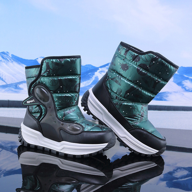 เด็กรองเท้าหิมะเด็กชายและเด็กหญิงสกีรองเท้าผ้าฝ้ายฤดูหนาวขนแกะเรียงรายหนากรงเล็บเหล็กเด็กใหญ่กลางแจ้งรองเท้าผ้าฝ้ายสั้น