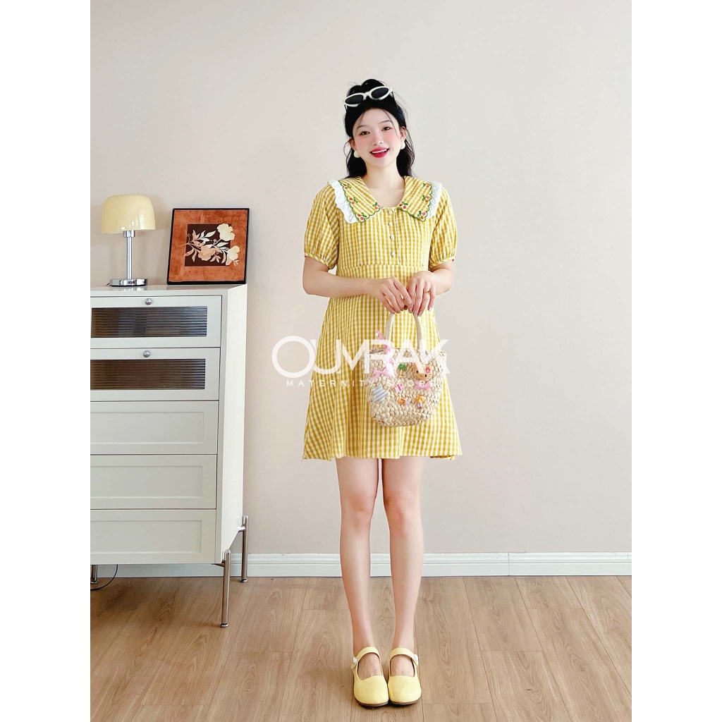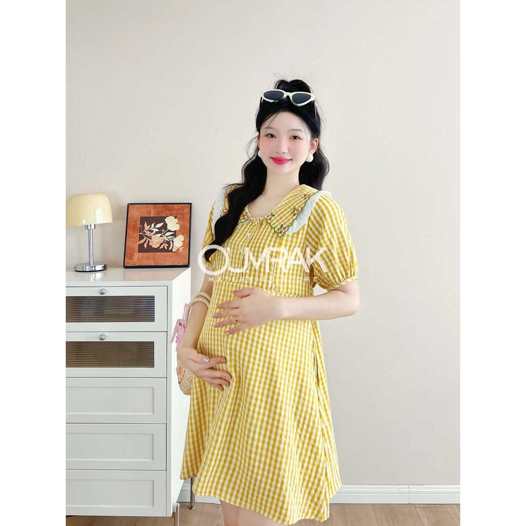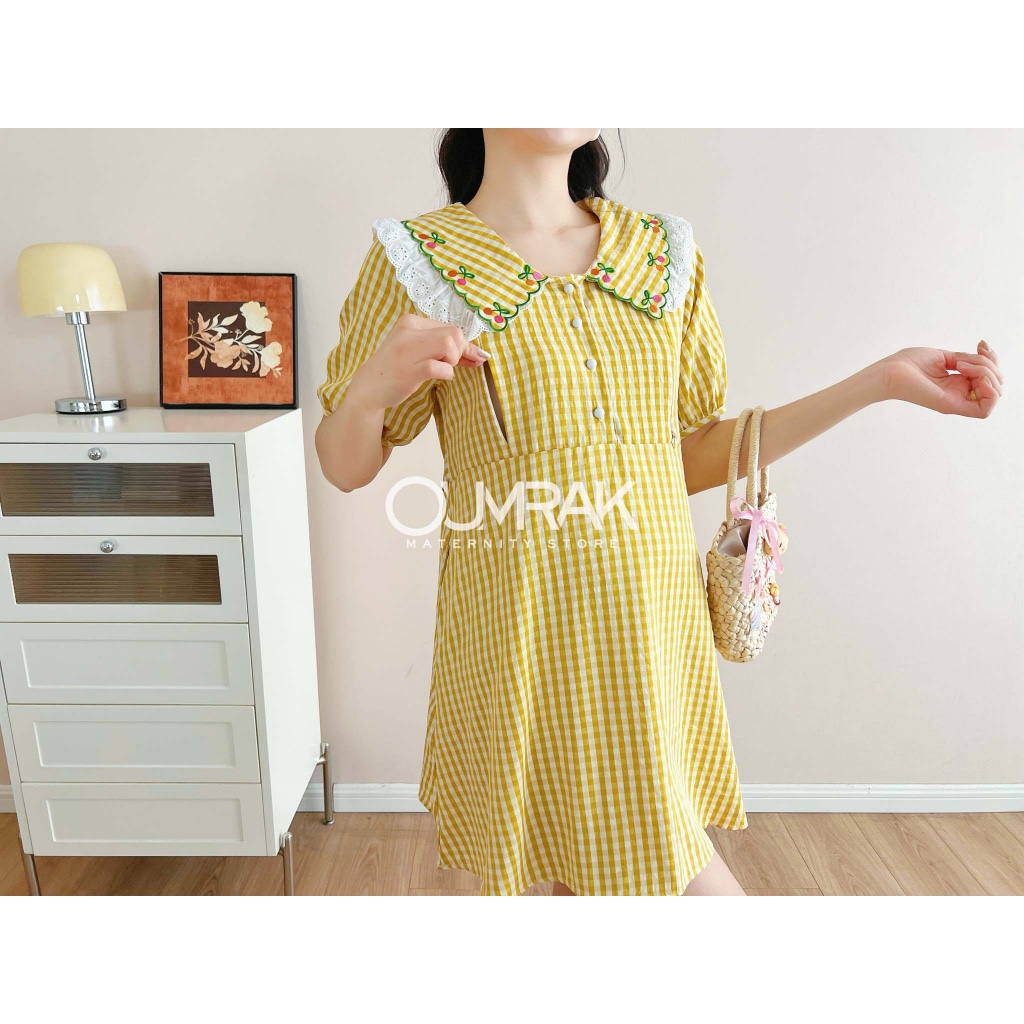 BB1167 ( สายผูก + ซับใน + ให้นม +) ชุดมินิเดรสคลุมท้องแฟชั่น ผ้าคอตตอลลายสก็อต แบรนด์อุ้มรัก