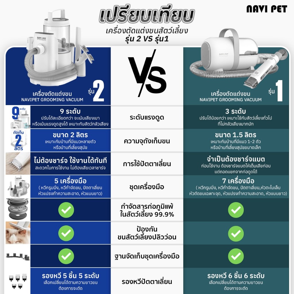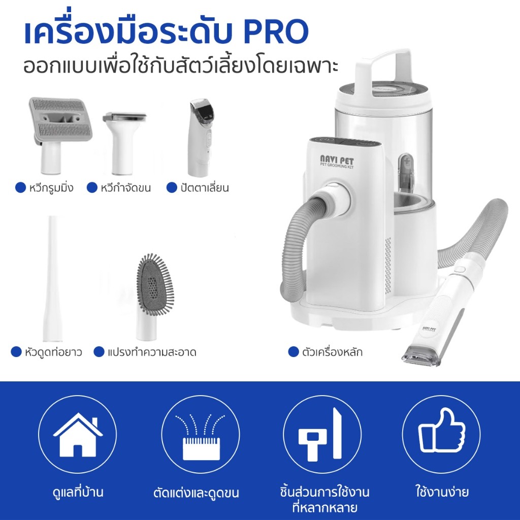 NaviPet Grooming Vacuum KIT2 5 in 1 เครื่องปัตตาเลียนตัดแต่งขนสำหรับสัตว์เลี้ยง และดูดฝุ่น กรูมมิ่งสำหรับดูด