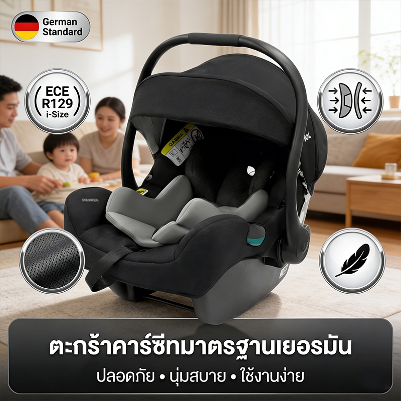 Beige คาร์ซีทกระเช้า คาร์ซีทสำหรับเด็กแรกเกิด สำหรับเด็กแรกเกิด 1-15 เดือน คาร์ซีทเด็กแรกเกิด
