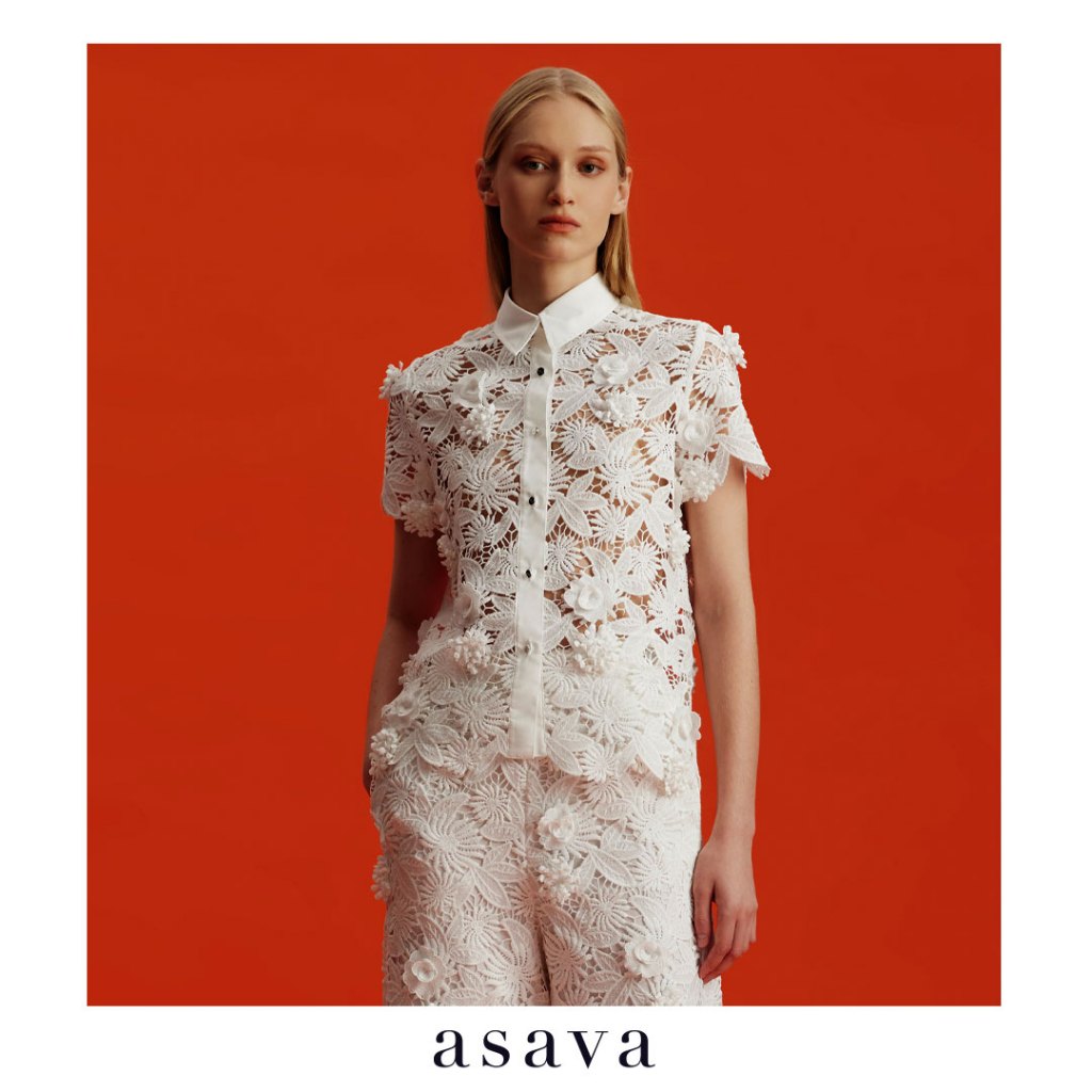 [asava aw24] Daniella Short Sleeve Shirt เสื้อเชิ้ตผู้หญิง แขนสั้น แต่งกระดุมหน้า ผ้าลูกไม้ตาไก่ 3 มิติ