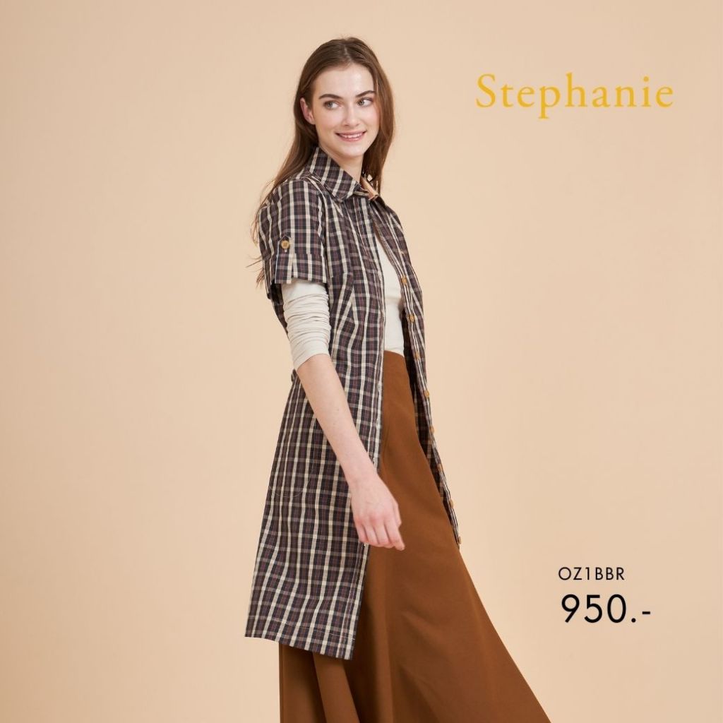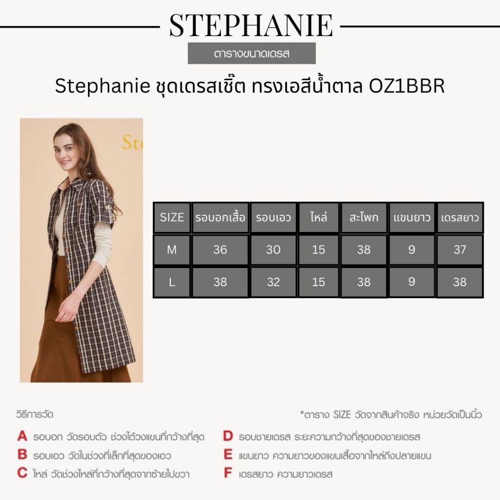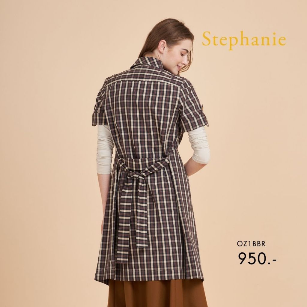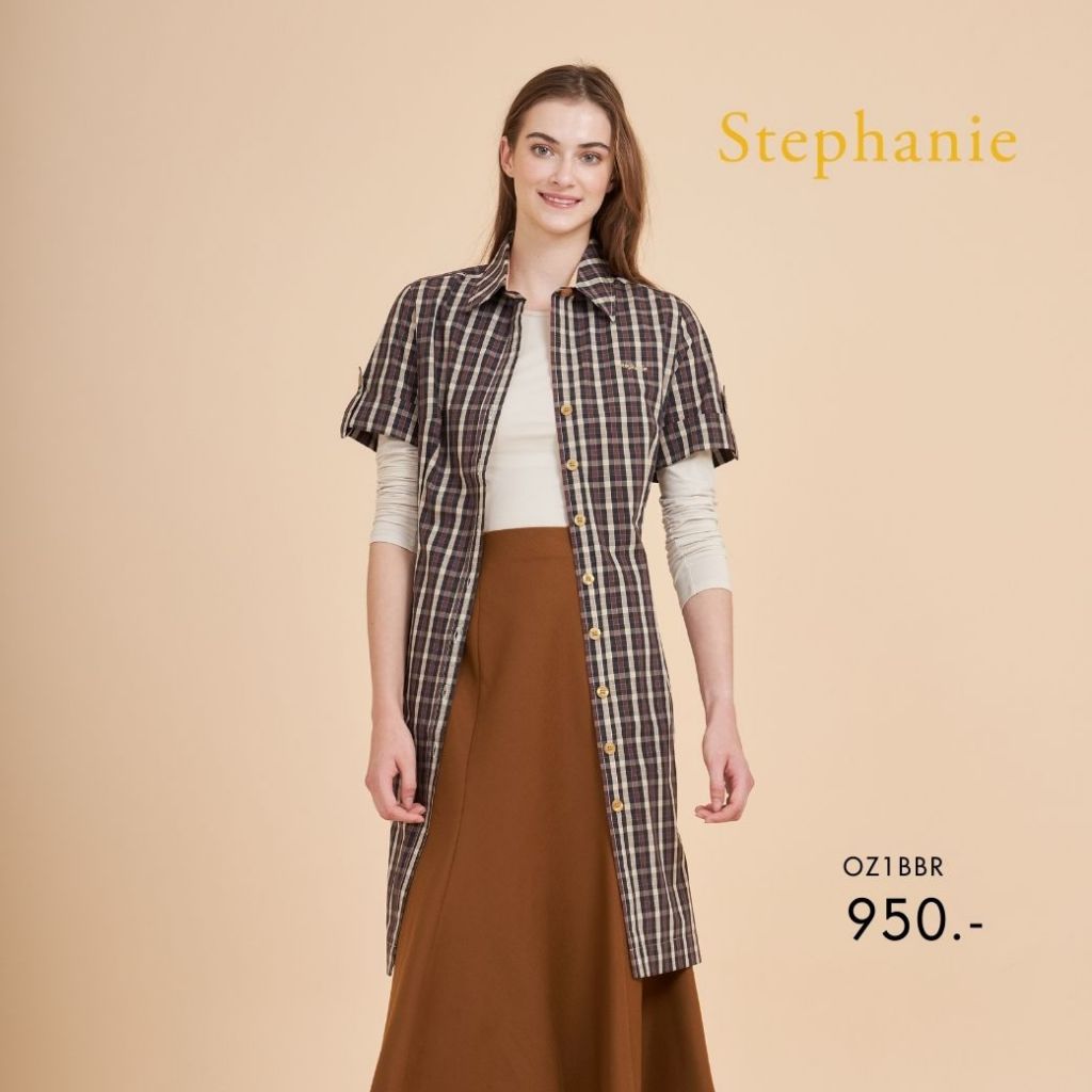 Stephanie ชุดเดรสเชิ๊ต DressA-Line ทรงเอสีน้ำตาล OZ1BBR