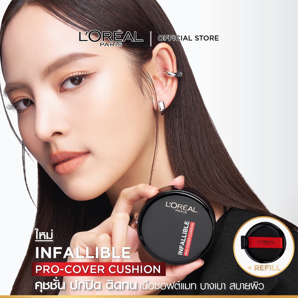 [สินค้าใหม่]ลอรีอัล ปารีส L’Oréal Paris Infallible Pro-Cover Cushion 14g คุชชั่น+ฟรี รีฟิล ปกปิดขั้นสูง ติดทน ฟินิชซอฟต์