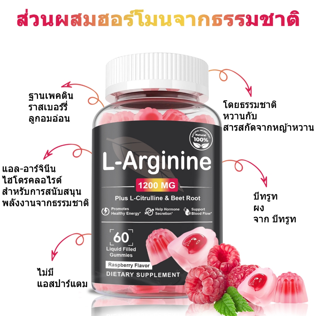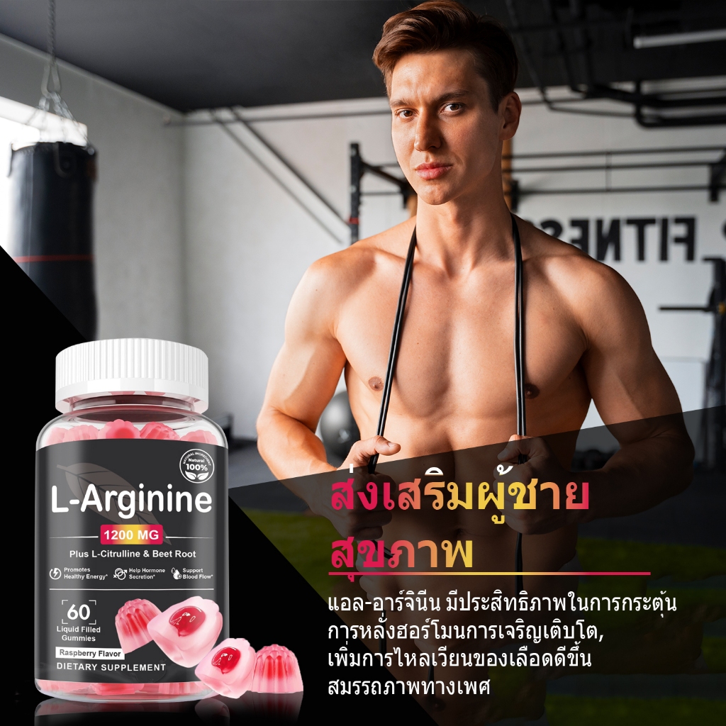 Softher L-Arginine Gummy Increase Power Boost กีฬา Performance Muscle Grow 60 ราสเบอร์รี่ เยลลี่