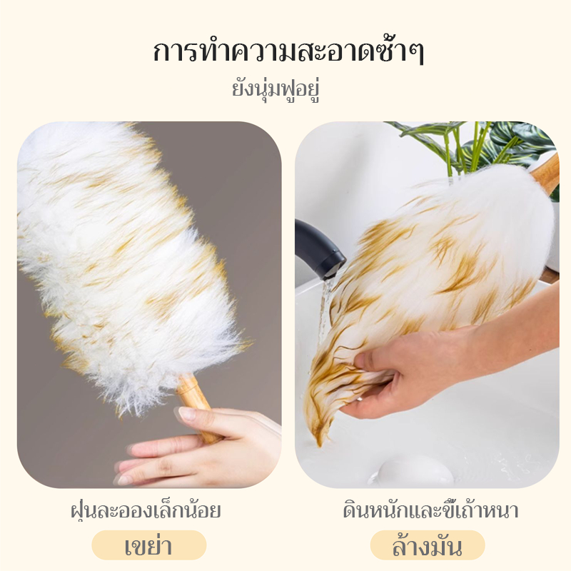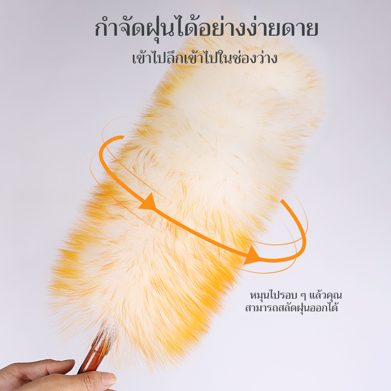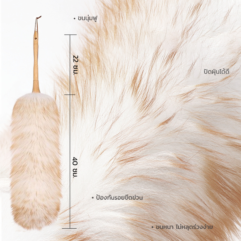 ไม้ปัดฝุ่นขนแกะแท้ เกรด A ยาว 62 ซม. ขนนุ่มฟู ด้ามยาว สำหรับรถ บ้าน ออฟฟิศ ไม้ปัดฝุ่นนาโน