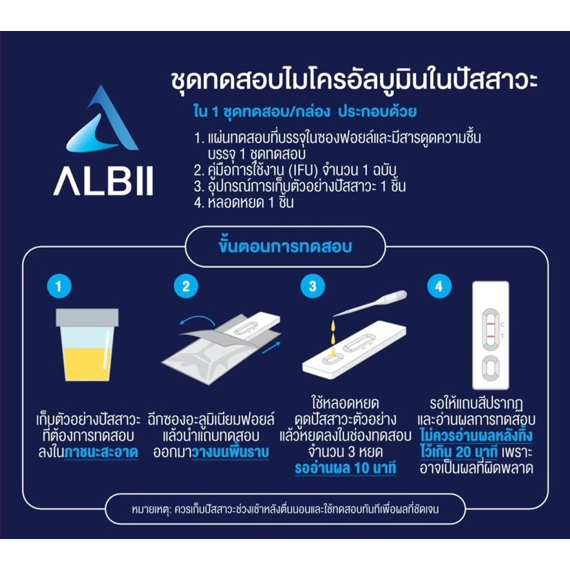 Albii Microalbuminuria Rapid Test ชุดทดสอบ ไมโครอัลบูมิน ในปัสสาวะ [1 ชุด] ชุดตรวจการทำงานของไต