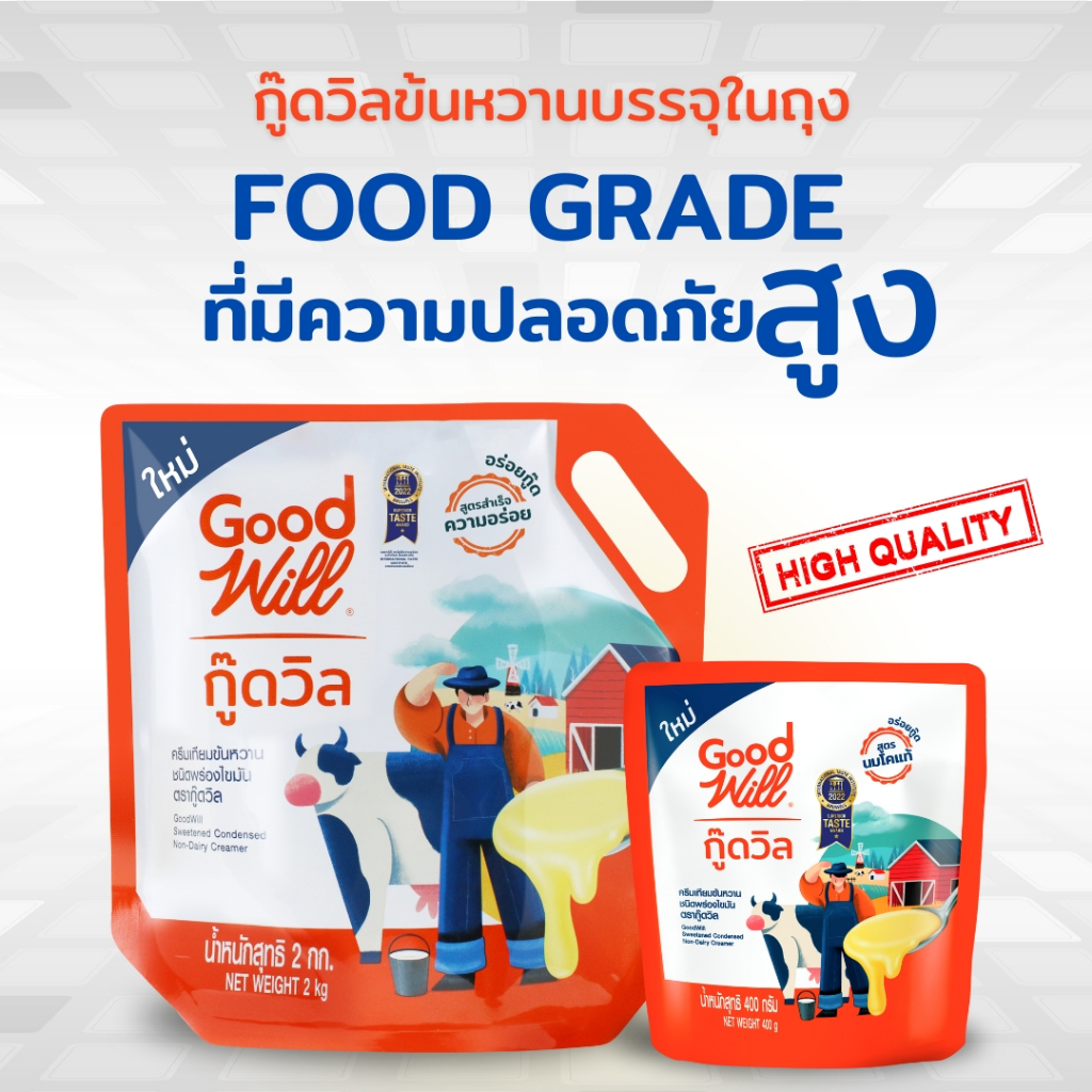 (ยกลัง8ถุง) นมข้นกู๊ดวิล นมข้นหวาน ถุง 2กก. ครีมเทียมข้นหวาน Goodwill 2kg #ส่งด่วน-ชัยฟู้ดแพคเกจจิ้ง