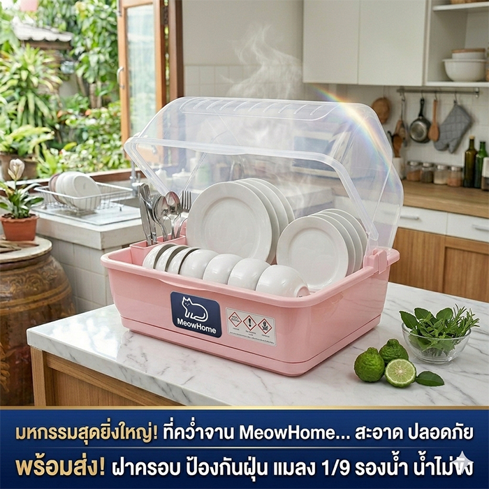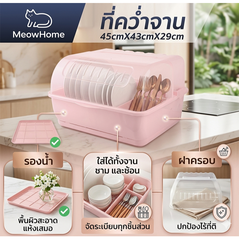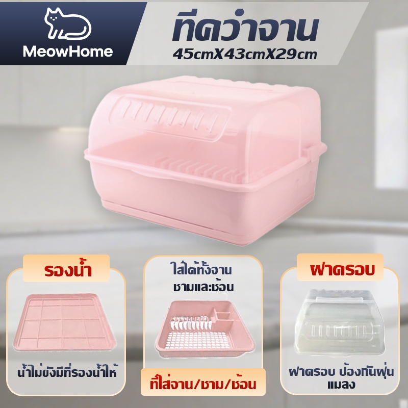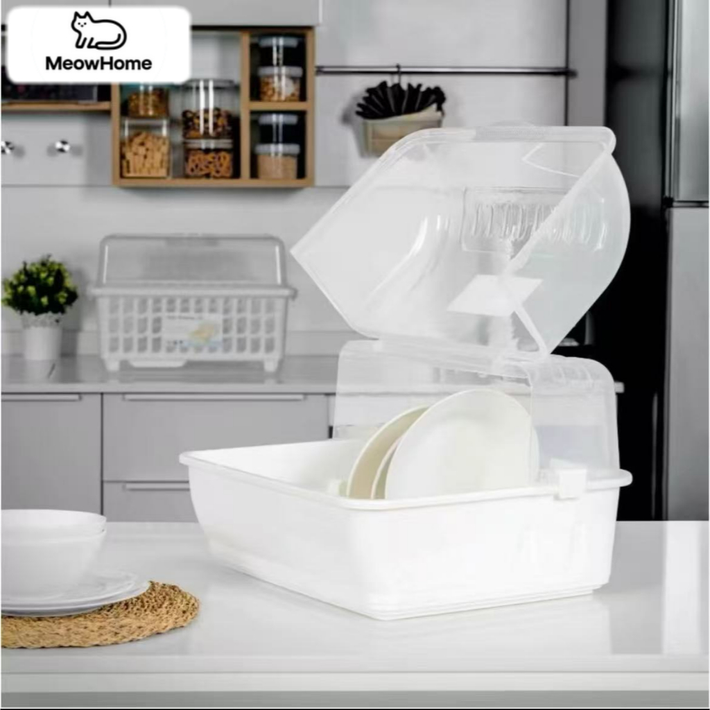 MeowHome ที่ควมจาน / แก้วน้ำ มีฝาปิดกันฝุ่น กันแมลง มีถาดรองดึงหน้า ชั้นวางของในครัว
