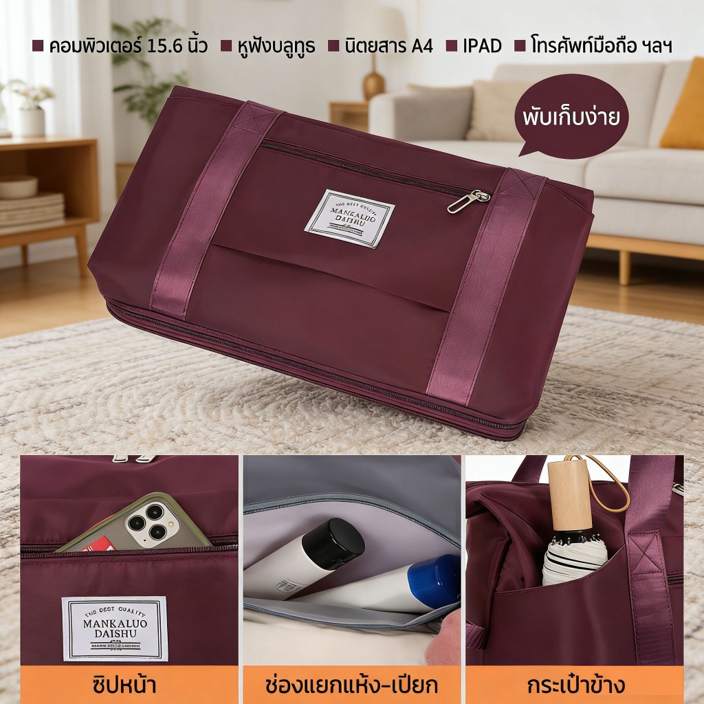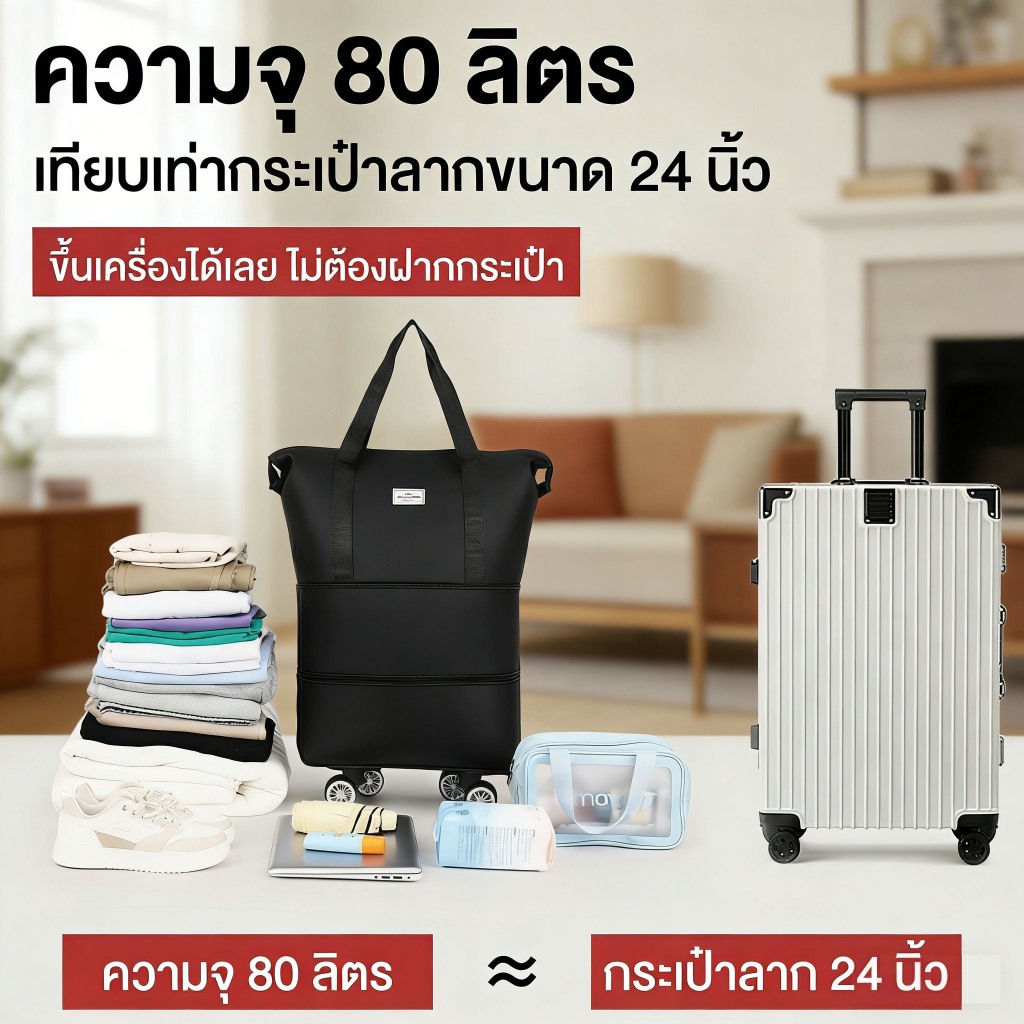 พร้อมส่งจากไทย กระเป๋าเดินทาง แบบพับได้ มีล้อ ขยายได้ 24นิ้ว พกพาง่ายสะดวก จุของได้เยอะ