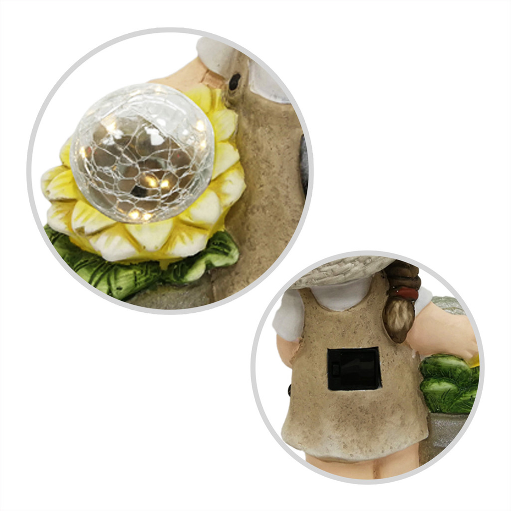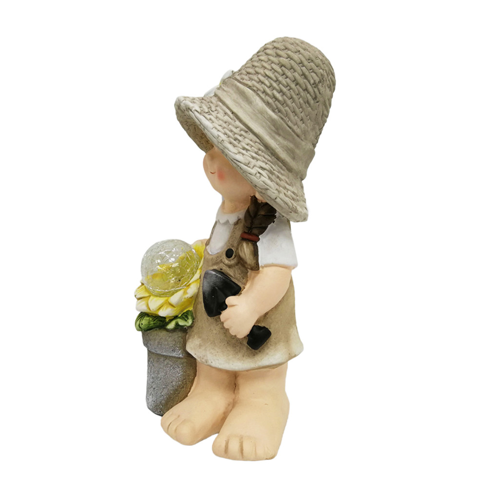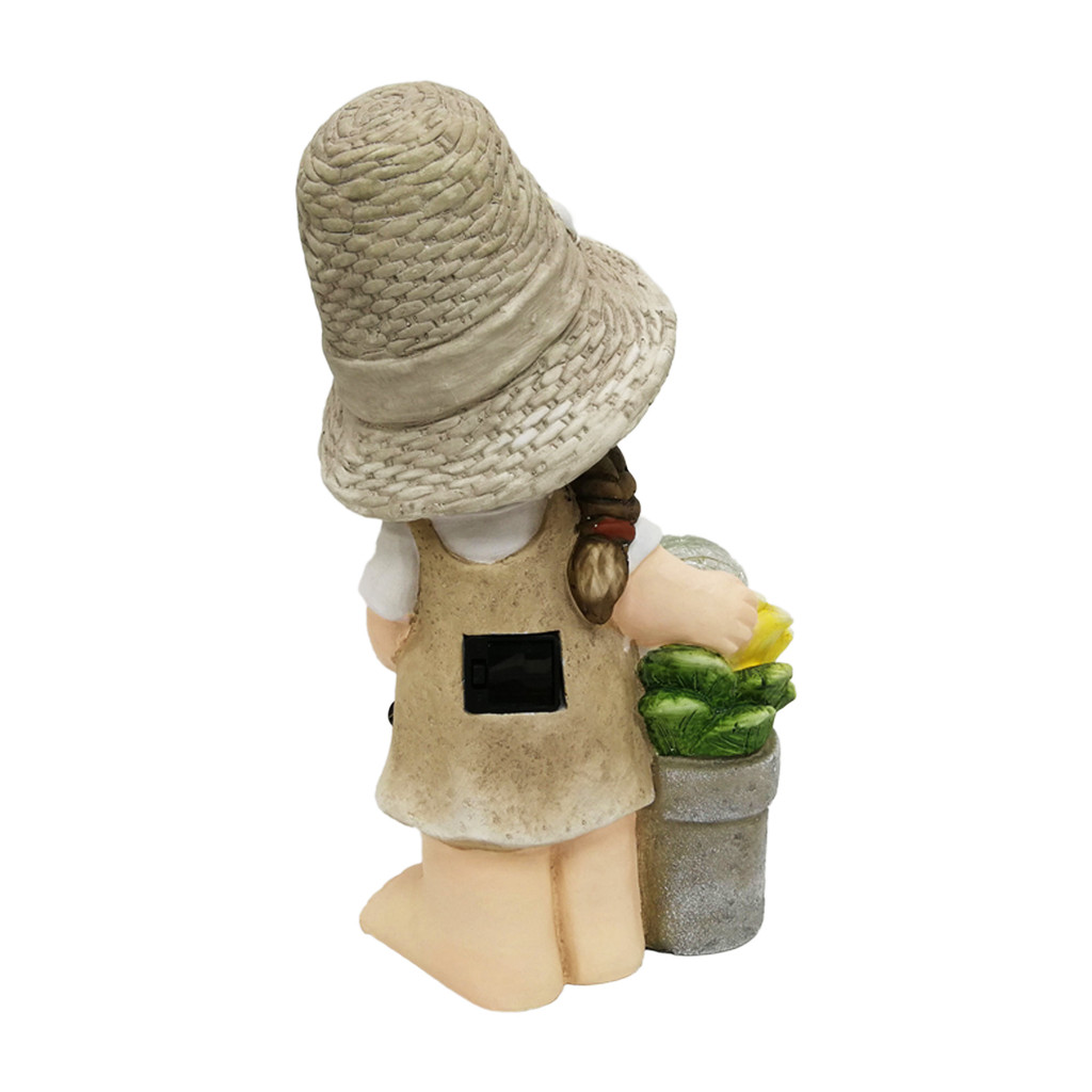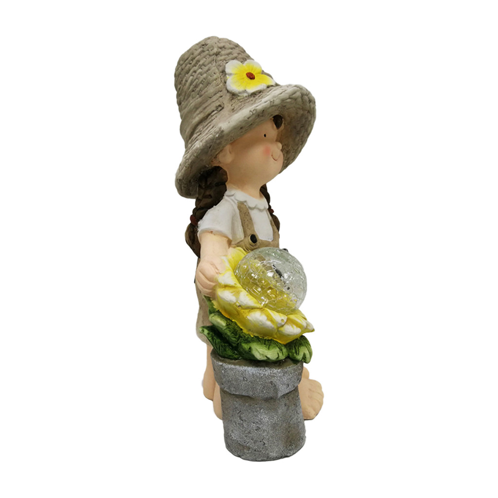 FONTE รูปปั้นแต่งสวนไฟโซลาร์เซลล์ เด็กผู้หญิงยืนคู่กระถางดอกไม้ รุ่น GB32-232062G