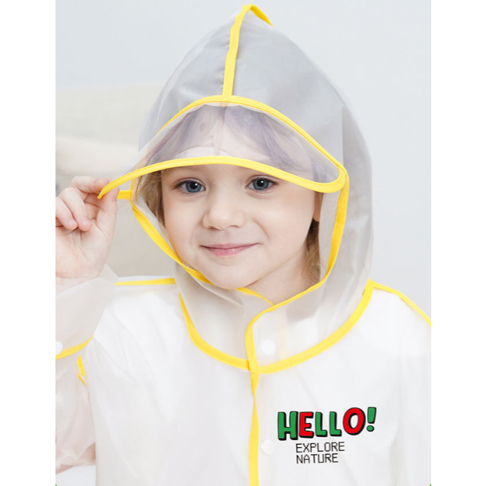 เสื้อกันฝนเด็ก ชุดกันฝนเด็ก มีฮู้ดกันฝน สีขาวขุ่น วัสดุEVAทน ลายการ์ตูนน่ารัก