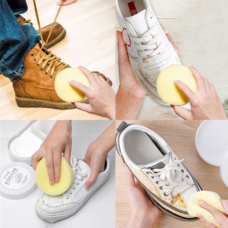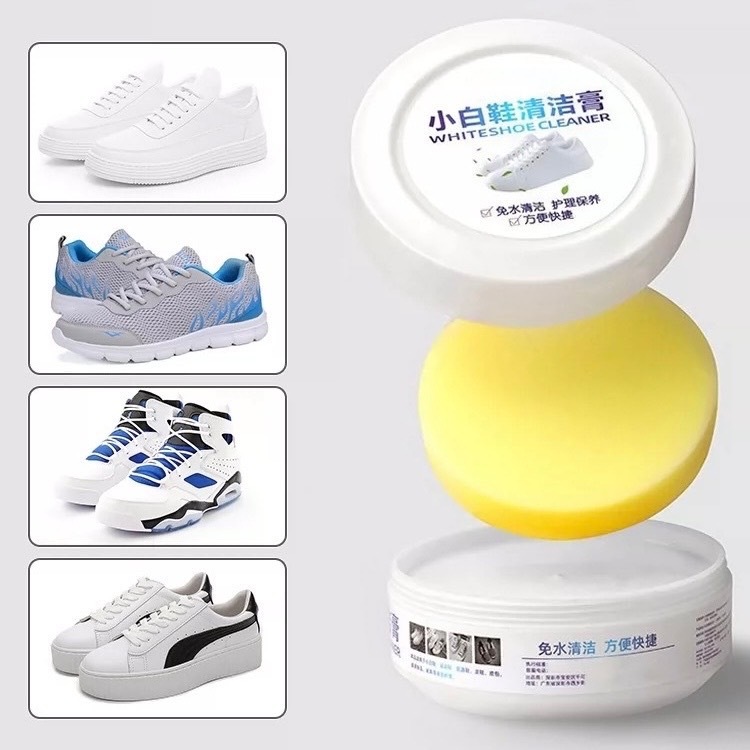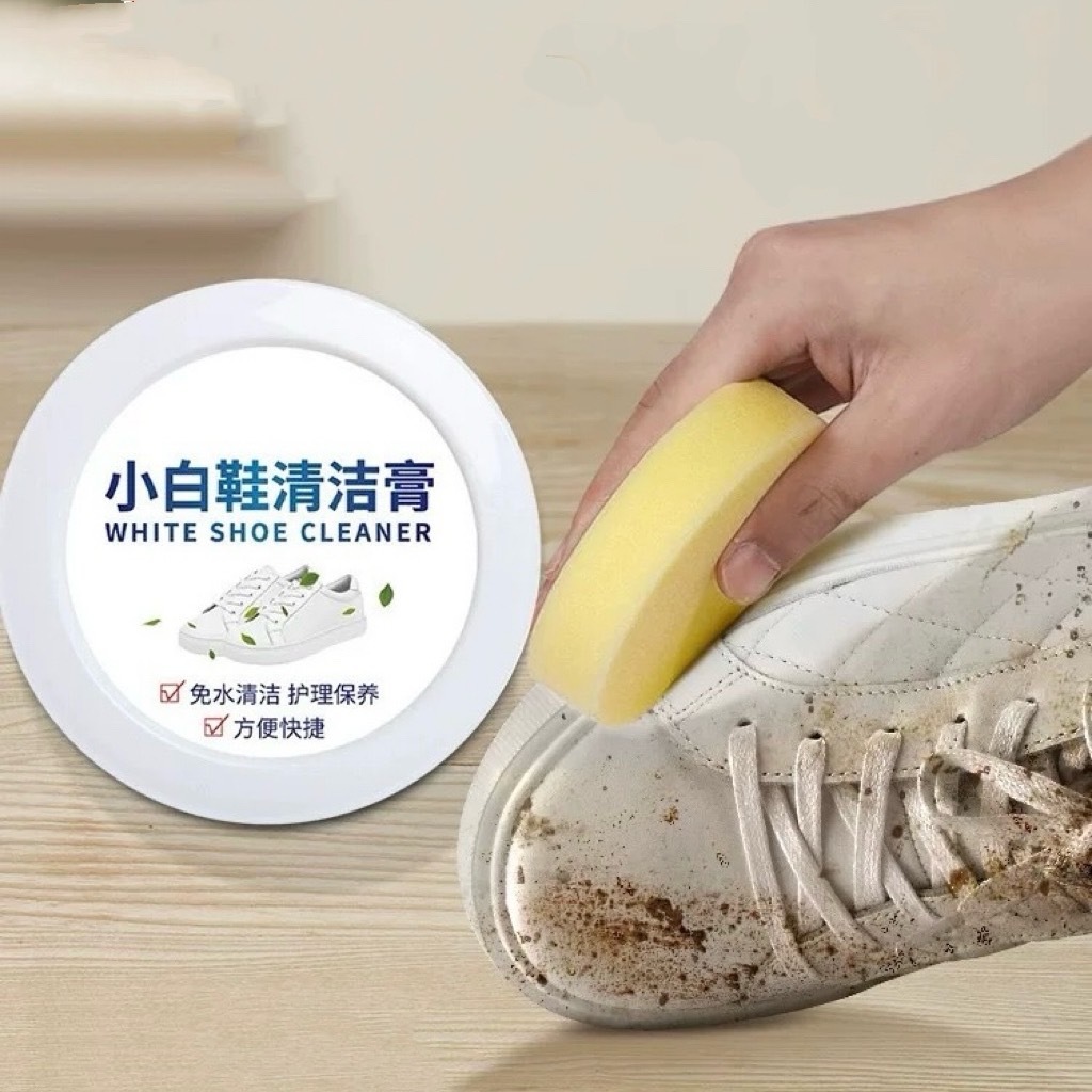 C050 ครีมขัดรองเท้าขาว ครีมทำความสะอาดเครื่องหนัง ขจัดคราบ ไม่ต้องล้าง พร้อมฟองน้ำ 120g