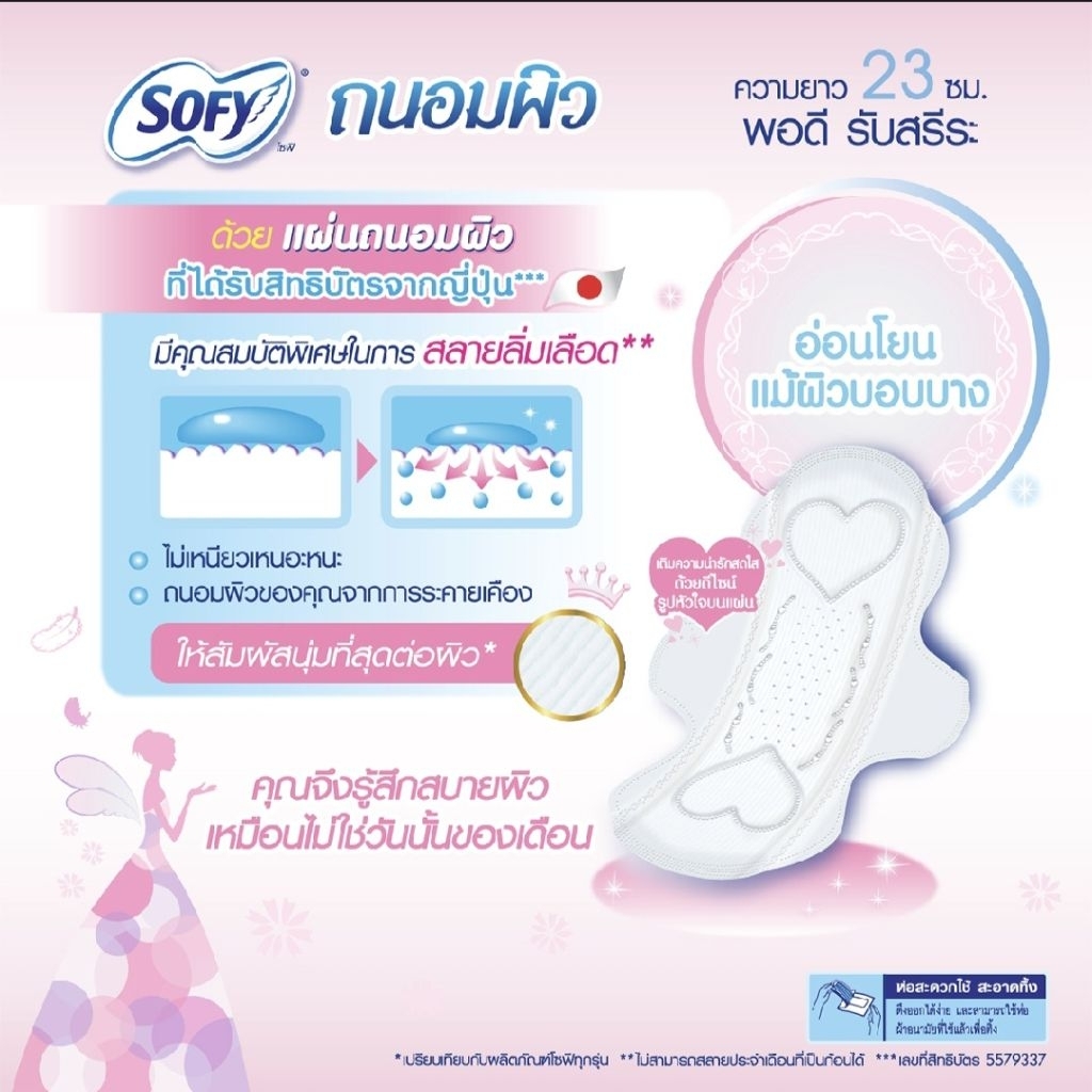 ผ้าอนามัย โซฟี SOFY แบบมีปีก แห้งสบายตลอดทั้งกลางวันและกลางคืน